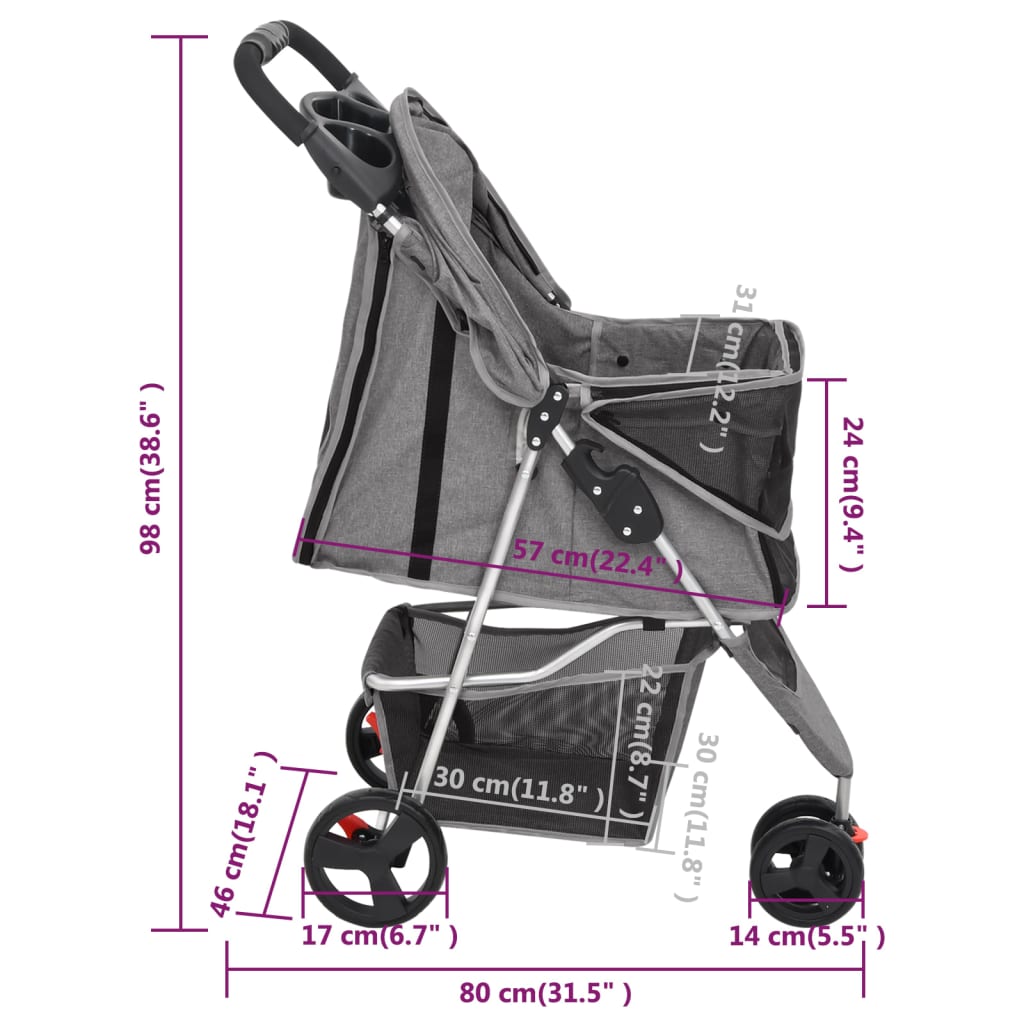 Skládací kočárek pro psa šedý 80 x 46 x 98 cm oxfordská tkanina