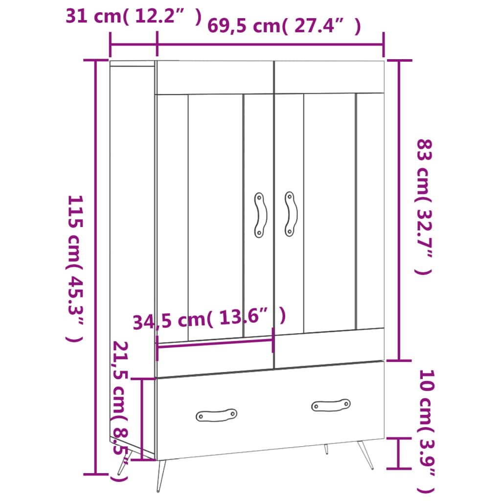 Rozměry: 69,5 x 31 x 115 cm (D x Š x V)