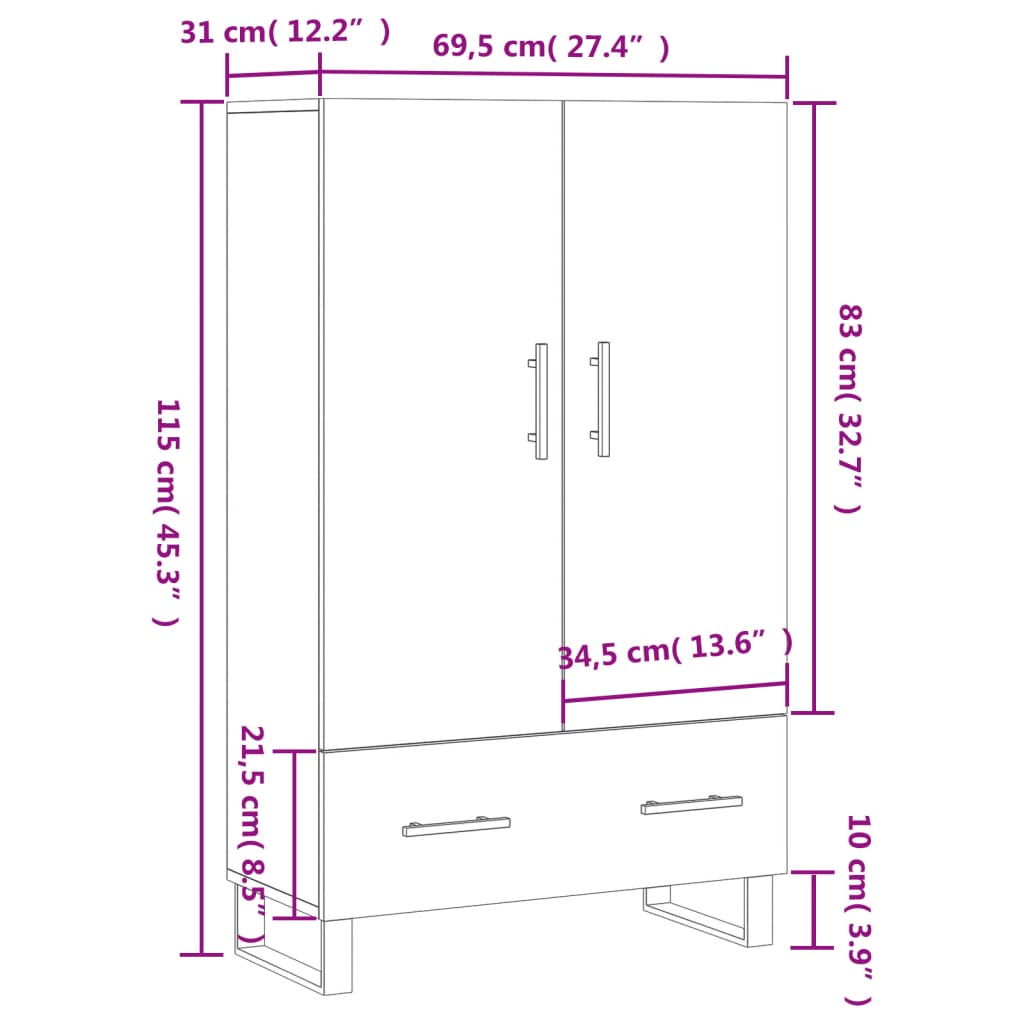 Skříň highboard bílá 69,5 x 31 x 115 cm kompozitní dřevo