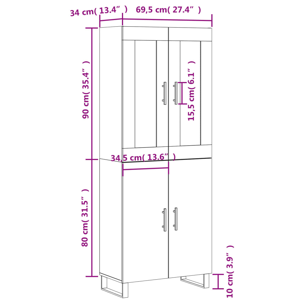 Rozměry příborníku: 69,5 x 34 x 90 cm (Š x H x V)