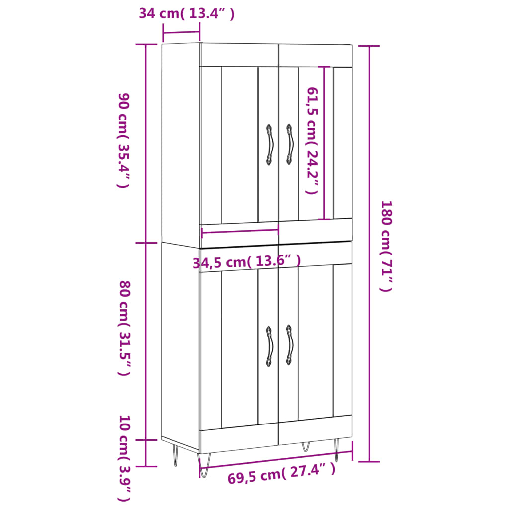 Skříň highboard bílá 69,5 x 34 x 180 cm kompozitní dřevo