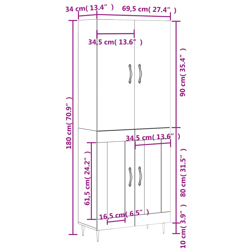 Rozměry příborníku: 69,5 x 34 x 90 cm (Š x H x V)