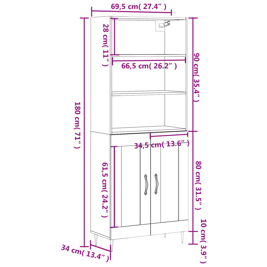 Skříň highboard dub sonoma 69,5 x 34 x 180 cm kompozitní dřevo
