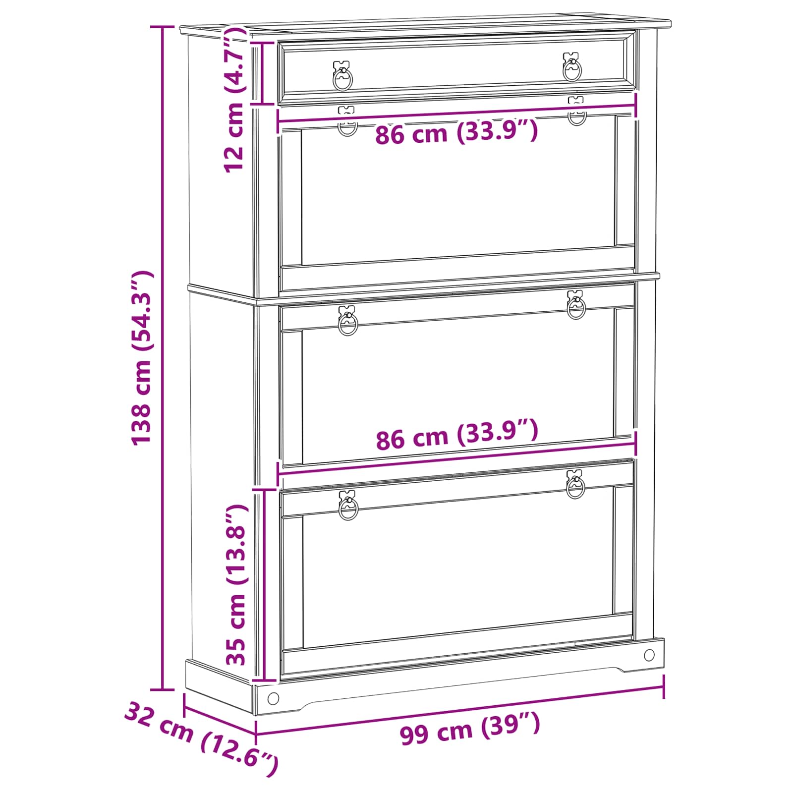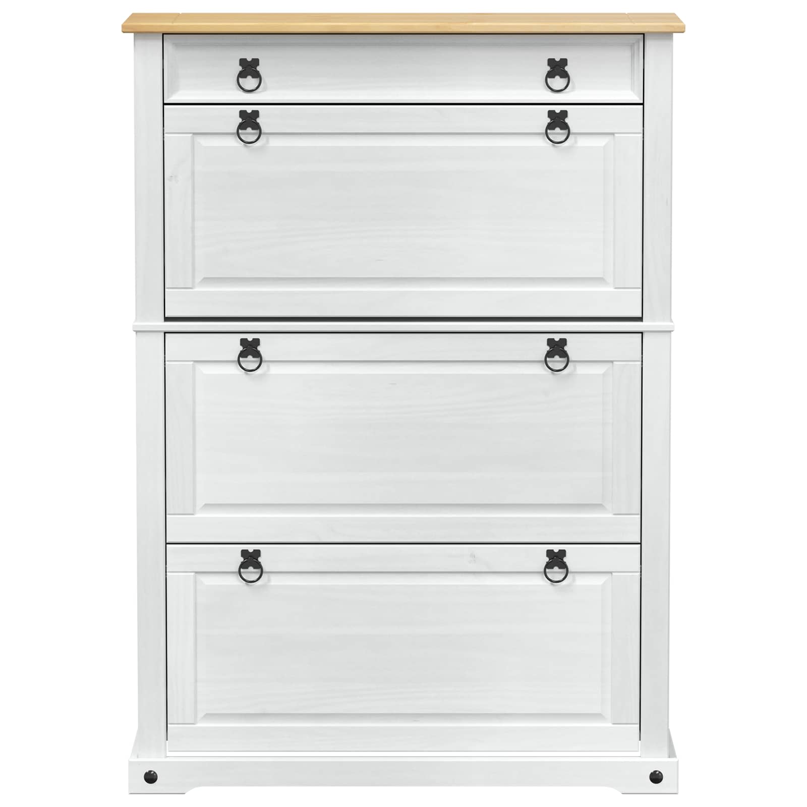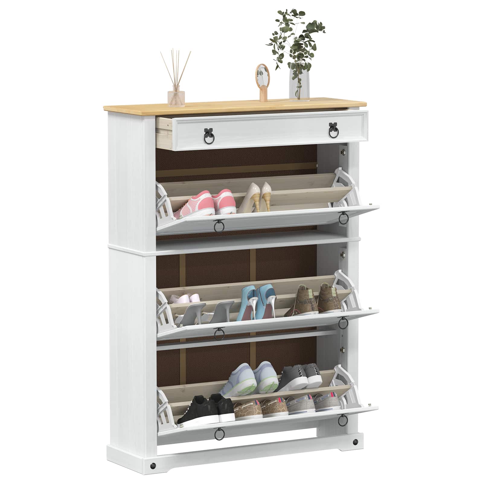 Skříň na boty z masivního dřeva představuje skvělý rustikální prvek, který s radostí zapadne do každého domova. Tato skříň slouží jako úložný prostor a zároveň vypadá moc pěkně. Solidní borové dřevo dodává interiéru kousek přírody, takže se hodí do chodeb, skříní nebo ložnic.