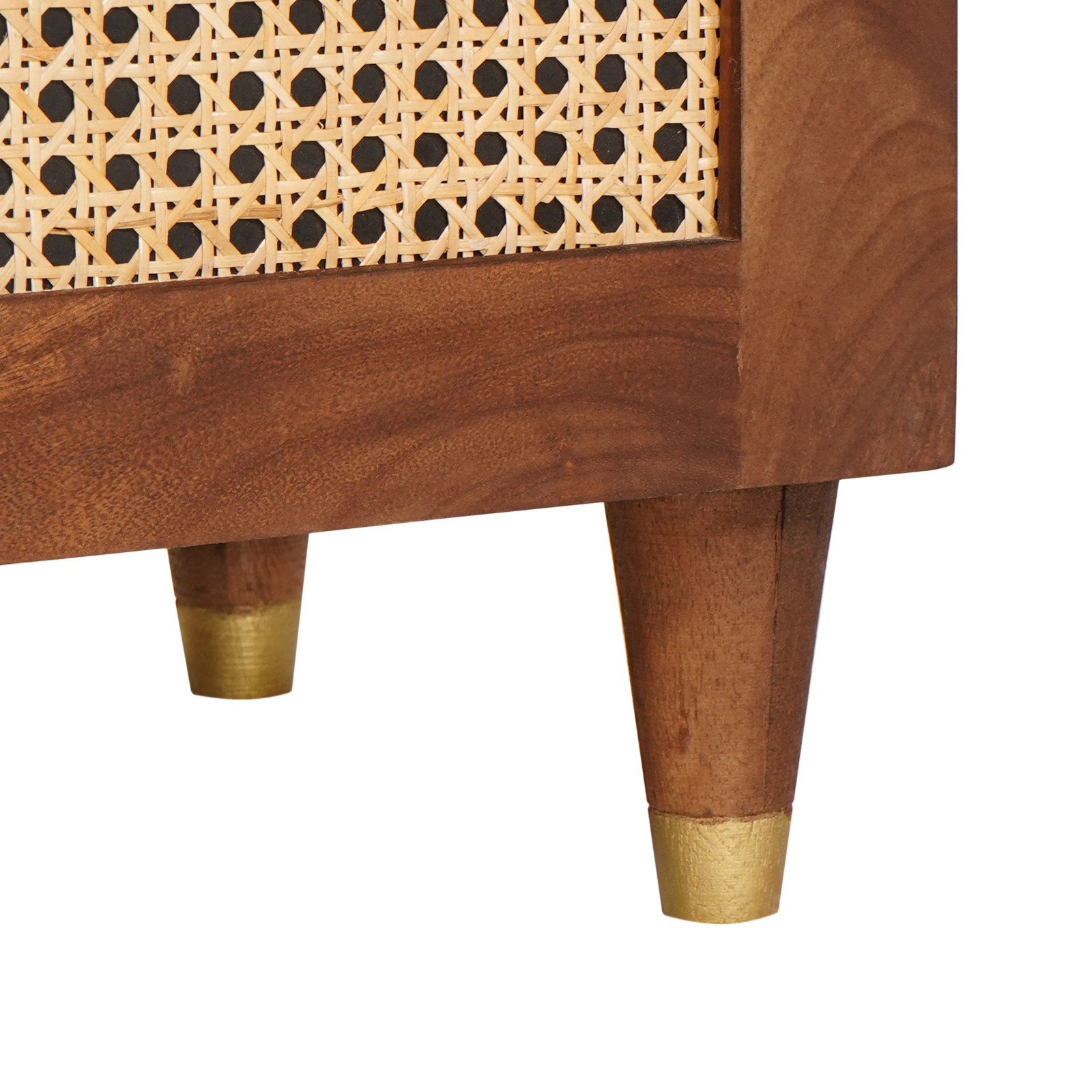Tahle obdélníková skříň z mangového dřeva nabízí krásnou kombinaci stylu a praktického využití, ideální pro jakékoli místo. Díky konstrukci z masivního mangového dřeva a proutěným akcentům přináší rustikální i elegantní atmosféru, která se hodí do různých interiérů. Ať už je to v obýváku nebo pracovně, její teplá hnědá barva přidává útulnost a eleganci do tvého prostoru.