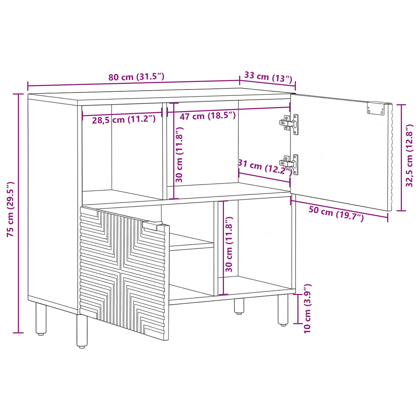 Tato moderní dřevěná komoda je elegantní a obdélníková. Skvěle zapadá do jídelní nebo obývací části a stává se středobodem, kde se potkává funkčnost s rustikálním vzhledem. Přitom perfektně ukryje všechny vaše jídelní potřeby a hezky je organizuje. Její rustikální design ukazuje přirozenou krásu dřeva a doplňuje jak moderní, tak venkovské interiéry.