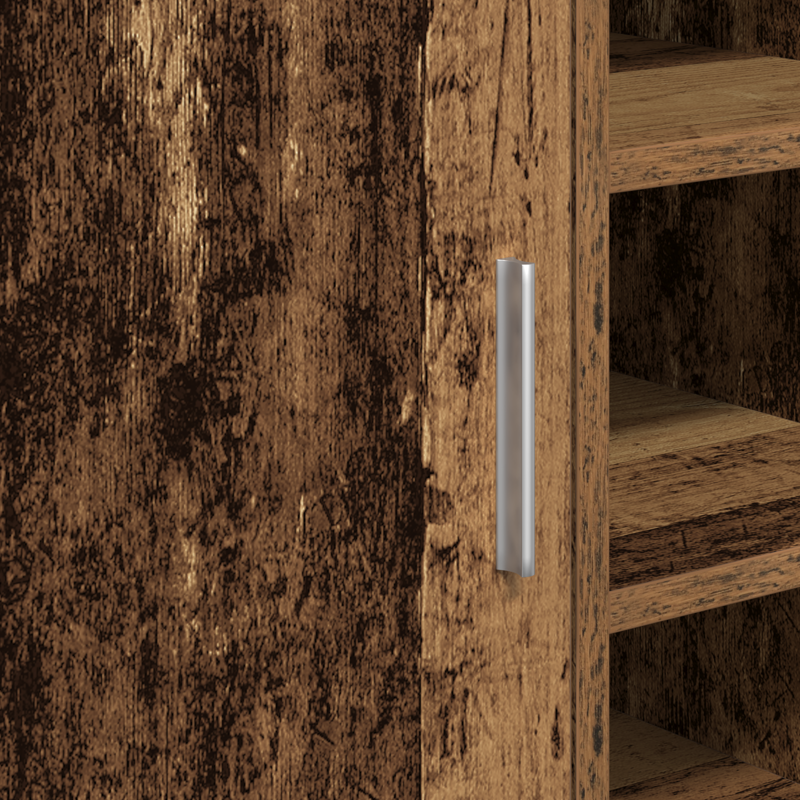 • Funkční dveře na pantech Skříňka má dveře na pantech, vyrobené z robustního kompozitního dřeva, což dovoluje hladký a jednoduchý přístup k uloženým věcem. Tento praktický design usnadňuje organizaci a přístup k denním potřebám, což eliminuje potřebu složitých mechanismů.
