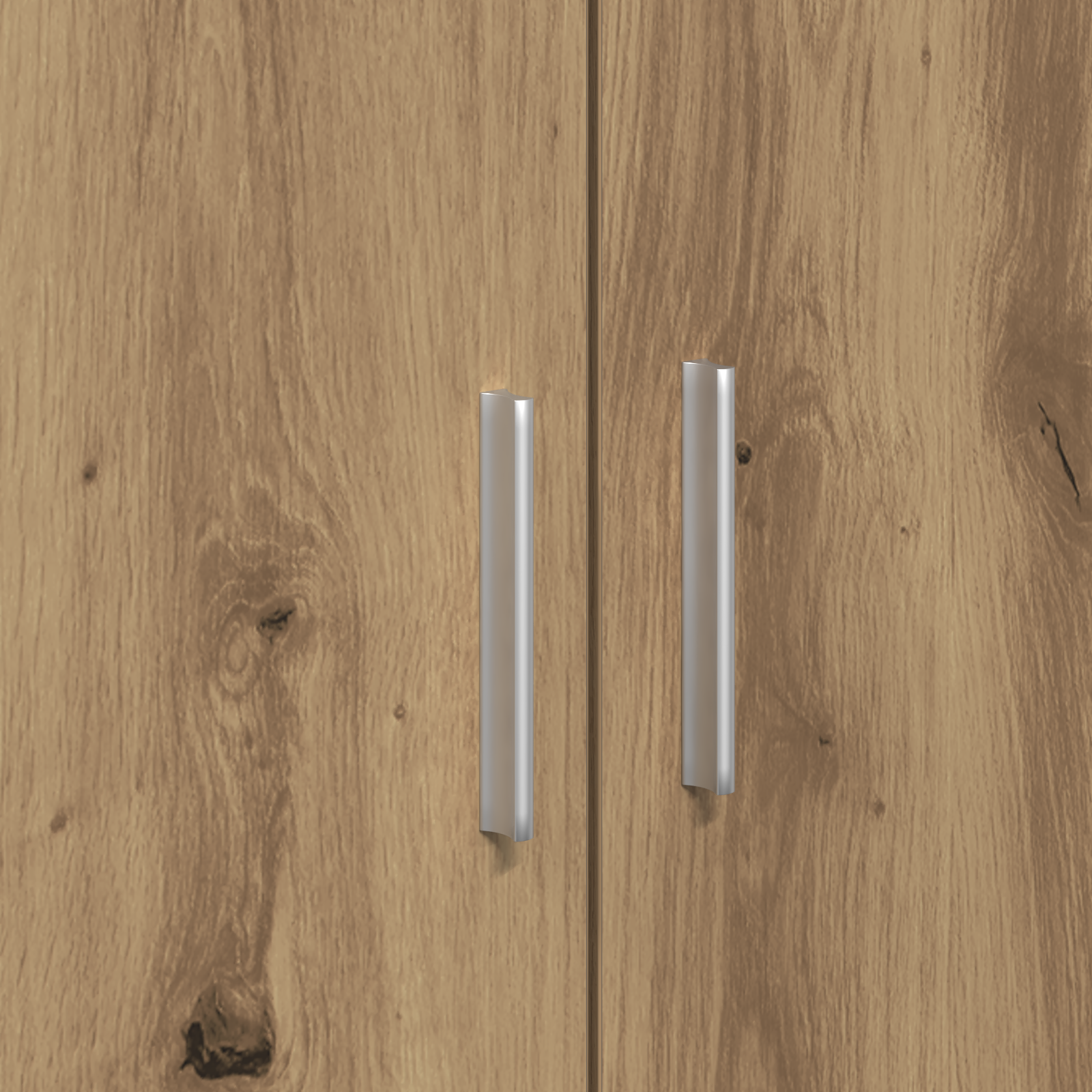• Moderní úchyty Skříňka, vybavená stylovými stříbrnými úchyty, zvyšuje komfort používání díky svým dlouhým a jednoduchým designovým prvkům. Tyto úchyty podtrhují moderní estetiku a přinášejí stylový dotek, který se snadno začlení do současných koupelnových dekorací.