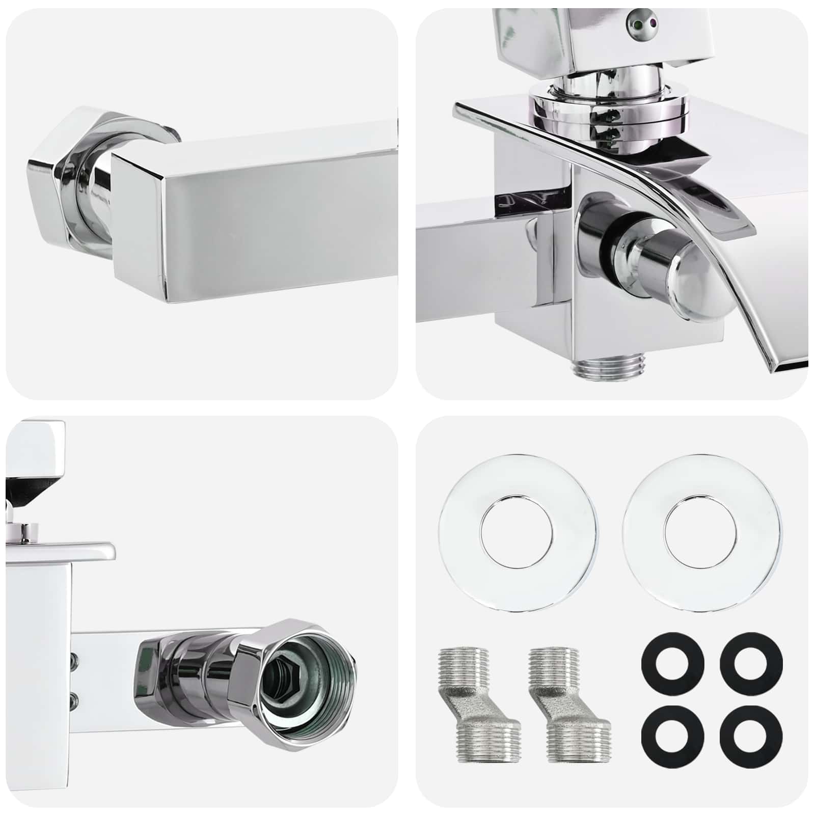 Sada Morden Shower přináší moderní řešení, které spojuje funkčnost s estetickým vzhledem. Její jednoduchý a čistý styl se hodí do jakékoli moderní koupelny nebo domácí posilovny. S obdélníkovým tvarem a lesklým povrchem dodává místnosti elegantní nádech, který nehodláte přehlédnout. Kvalitní materiály jako mosaz a plast zajišťují, že vám tento produkt dlouho vydrží a hezky vypadá.