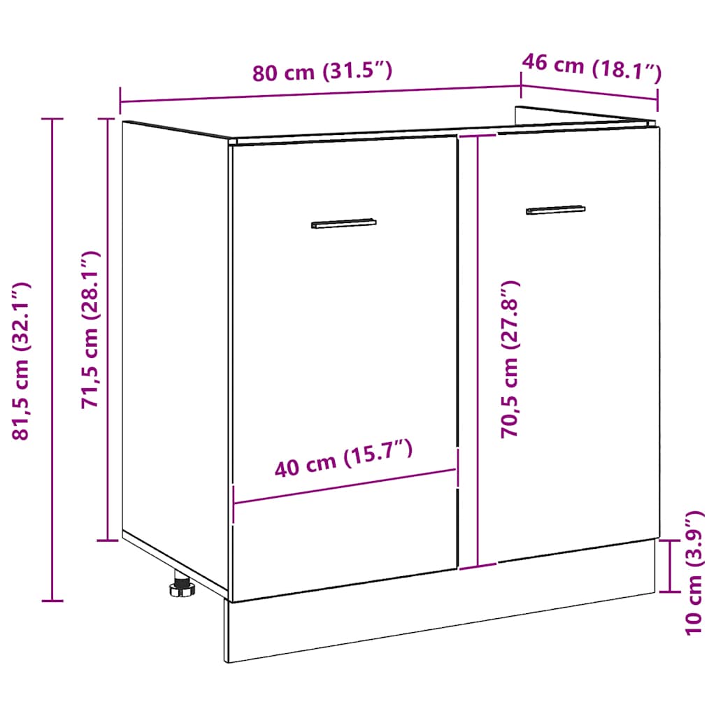Spodní Skříňka pod Dřez Černý Dub 80x46x81,5 cm Dýhované Dřevo
