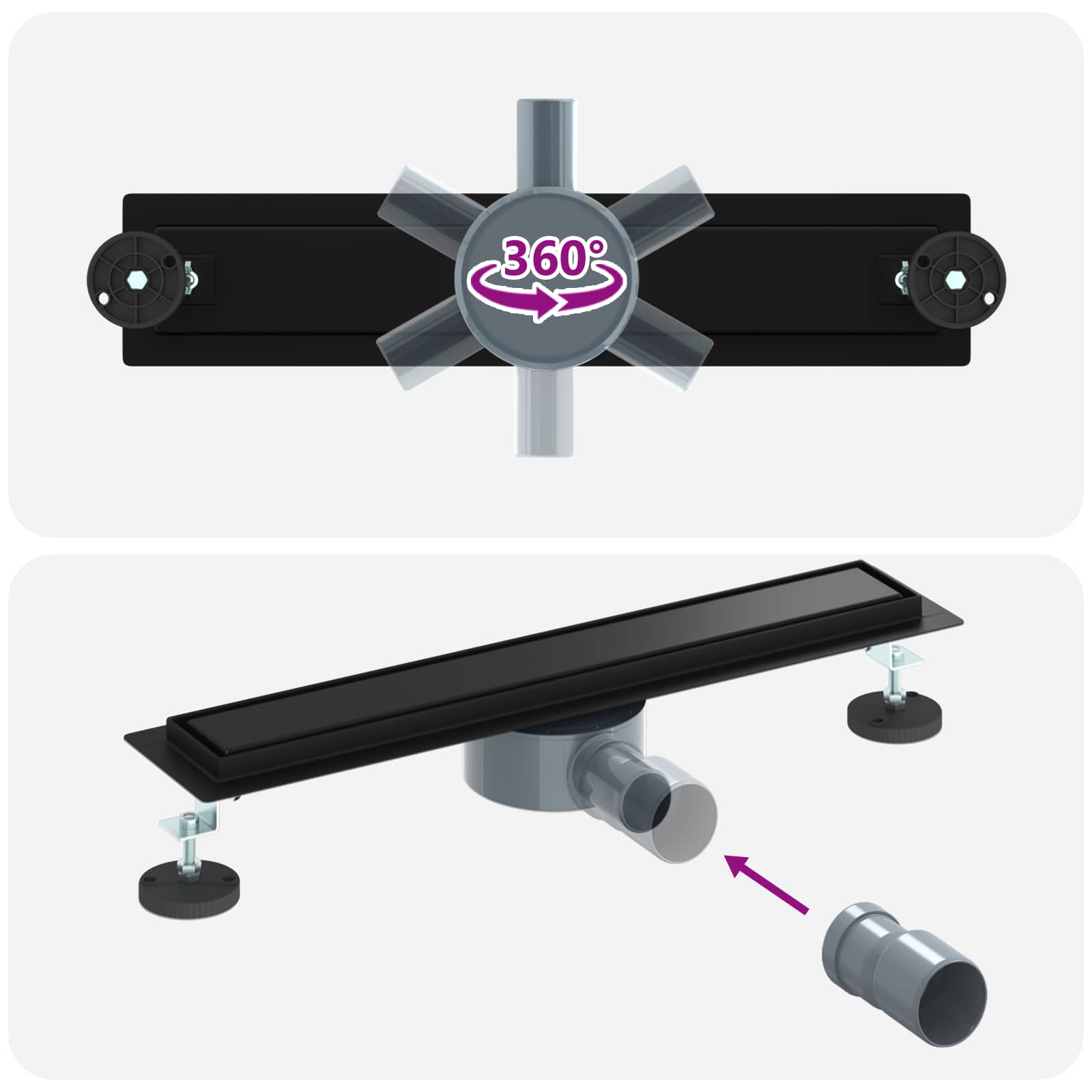 Sprchový odtok 2 v 1 s 360° sifonem Černá 50 cm