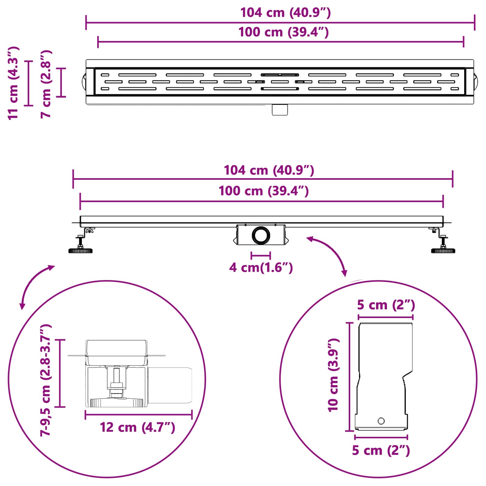 Tento sprchový odtok spojuje skvělý styl a funkčnost, což je ideální pro každý moderní prostor. Jeho elegantní obdélníkový design a nerezová konstrukce jej dělají praktickým a atraktivním doplňkem, který se hodí do různých interiérů a vytvoří atmosféru jako ve wellness.