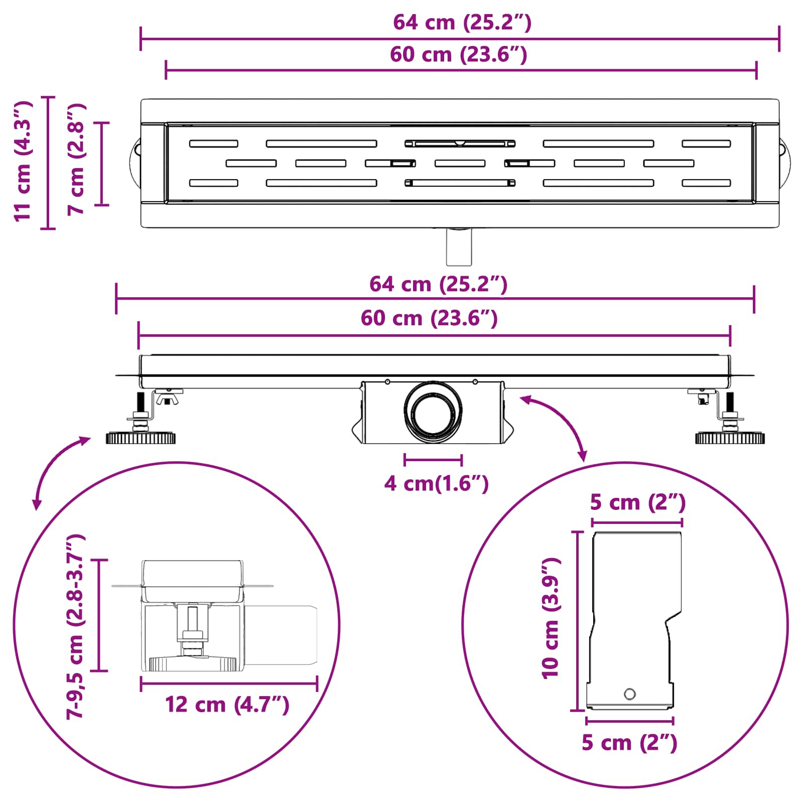 Tento sprchový odtok spojuje skvělý styl a funkčnost, což je ideální pro každý moderní prostor. Jeho elegantní obdélníkový design a nerezová konstrukce jej dělají praktickým a atraktivním doplňkem, který se hodí do různých interiérů a vytvoří atmosféru jako ve wellness.