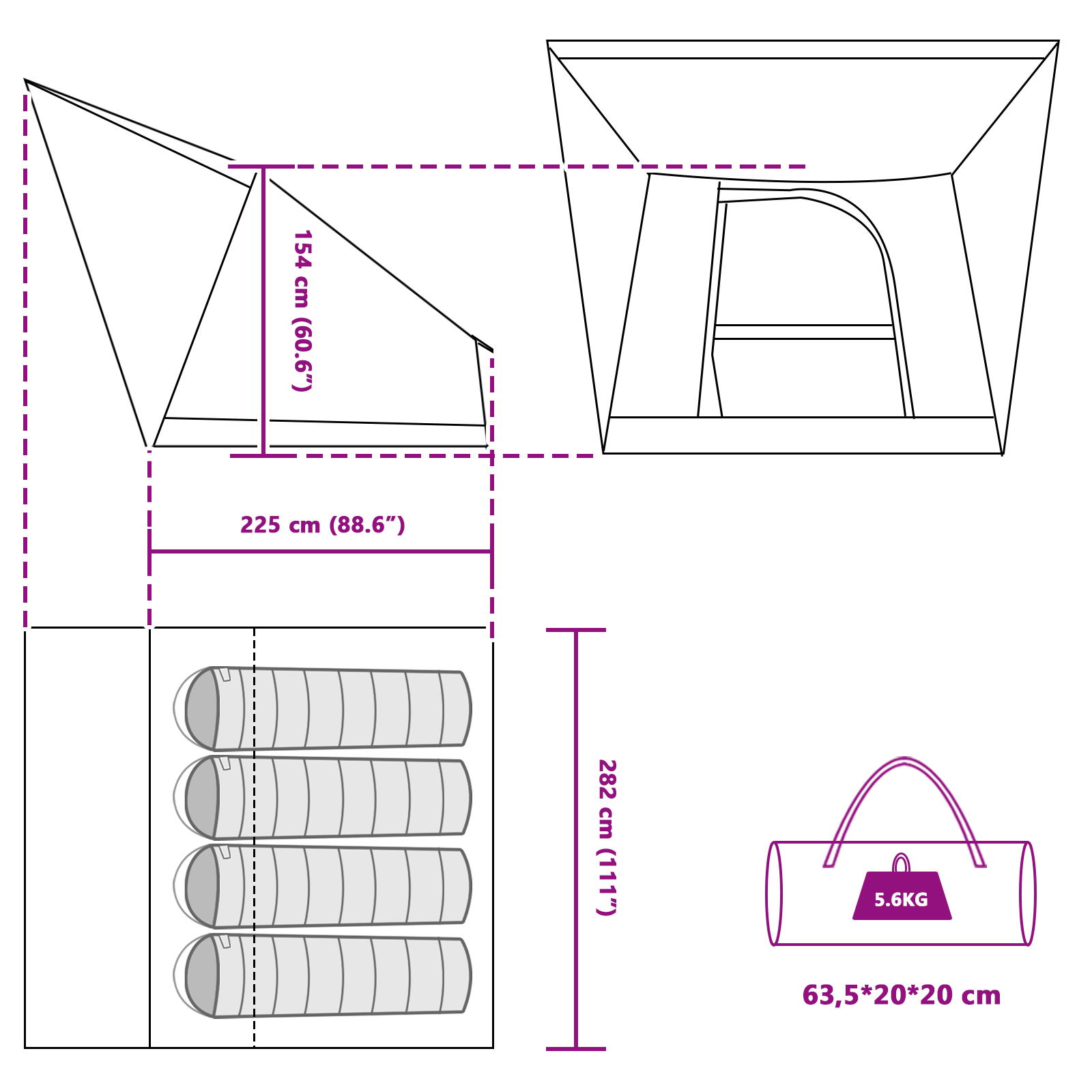 • Odolný taft: Tento stan je vyroben z kvalitní tkaniny, která vás ochrání před větrem a deštěm. Je to spolehlivá volba pro venkovní aktivity. Materiál nabízí stabilitu i v proměnlivých podmínkách, takže si kempování užijete naplno.