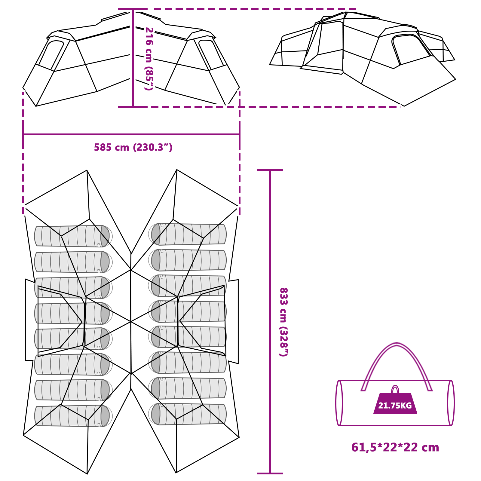 Tento rodinný stan nabízí super prostorné prostředí, ideální pro velké akce uprostřed přírody. Díky modernímu vzhledu a jednoduchému designu se hodí na rodinné výlety nebo společné outdoorové akce. Pojme až 12 lidí a vytvoří nezapomenutelné zážitky a příjemné bydlení v otevřené krajině.
