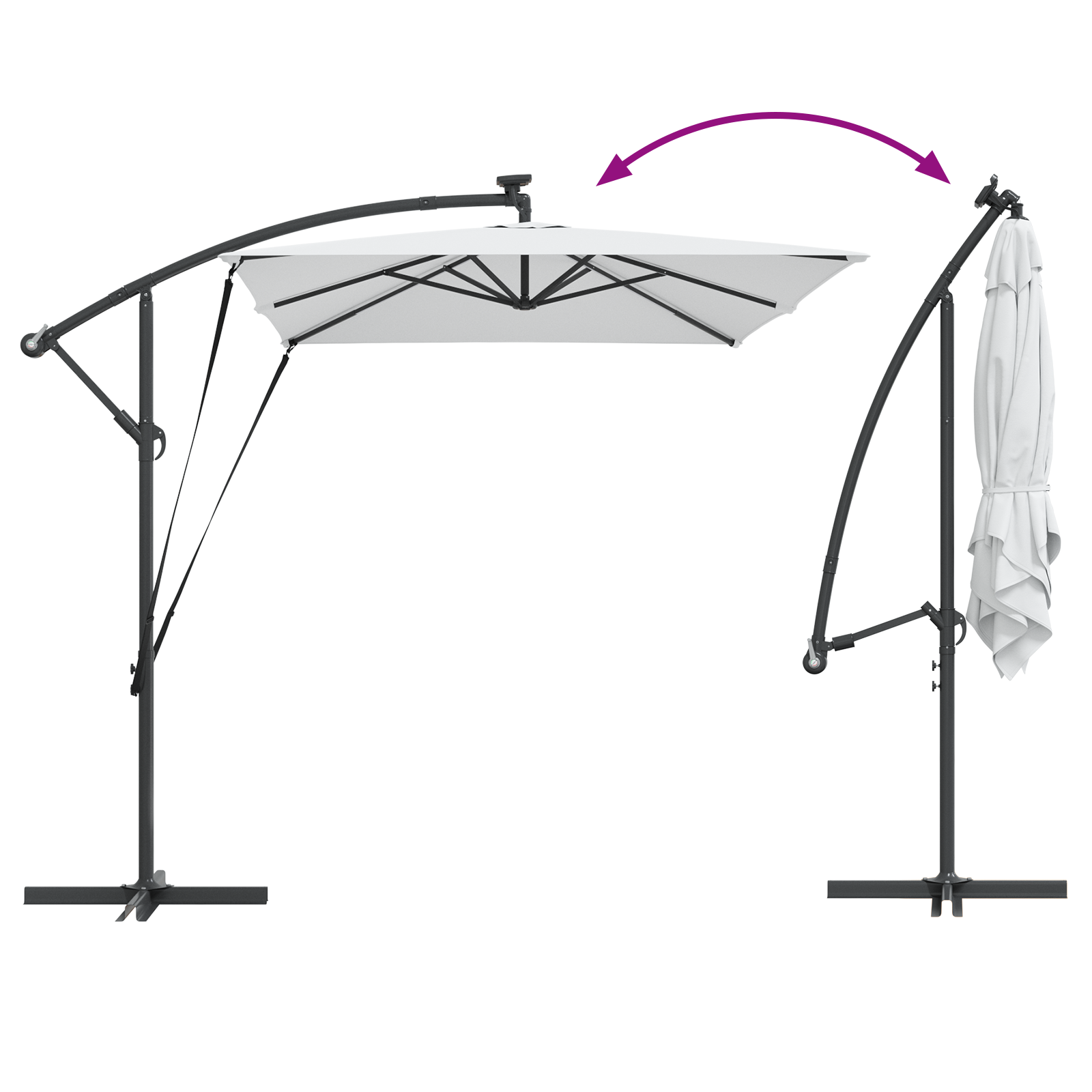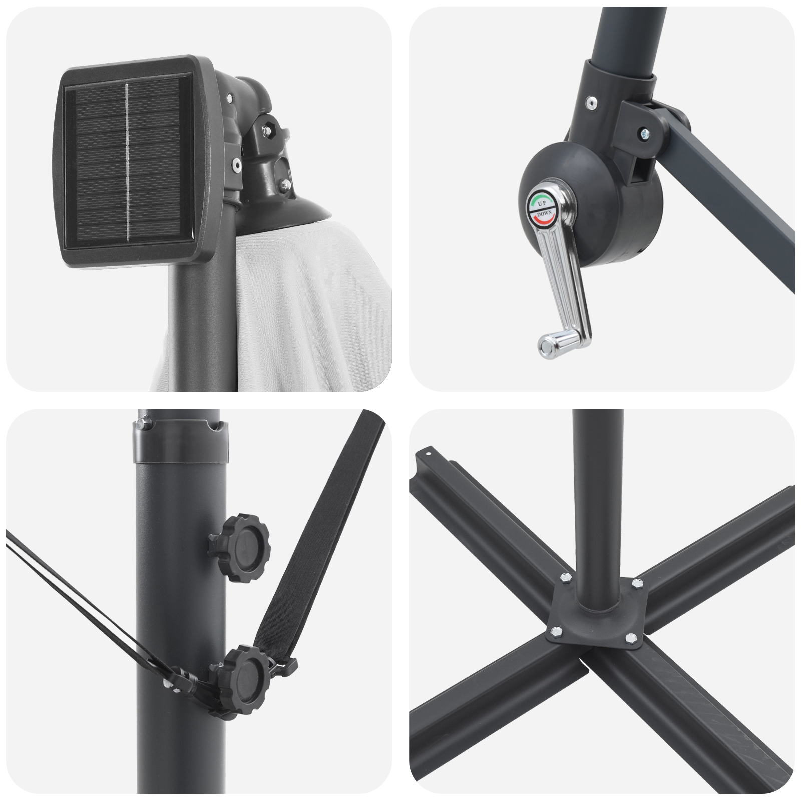 Tento konzolový banánový deštník je skvělý doplněk do každého venkovního prostoru – nabídne vám styl i funkčnost. Jeho moderní vzhled s jasnými liniemi a minimálním zdobením je ideální pro současné prostory. Ať už ho dáte na balkon, do zahrady nebo na terasu, nastavitelná střecha poskytuje variabilní stín pro celodenní pohodlí a ochranu. Díky velkým rozměrům ideálně chrání před silným sluncem a zlepšuje tak každý venkovní zážitek.