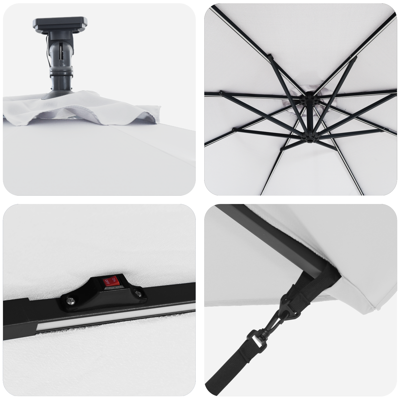 • 360° otáčení: Slunečník vám umožní plně se otáčet, takže si ho snadno nastavíte pro ochranu před sluncem během dne. To z něj dělá ideální volbu pro zahradu nebo outdoorové akce.