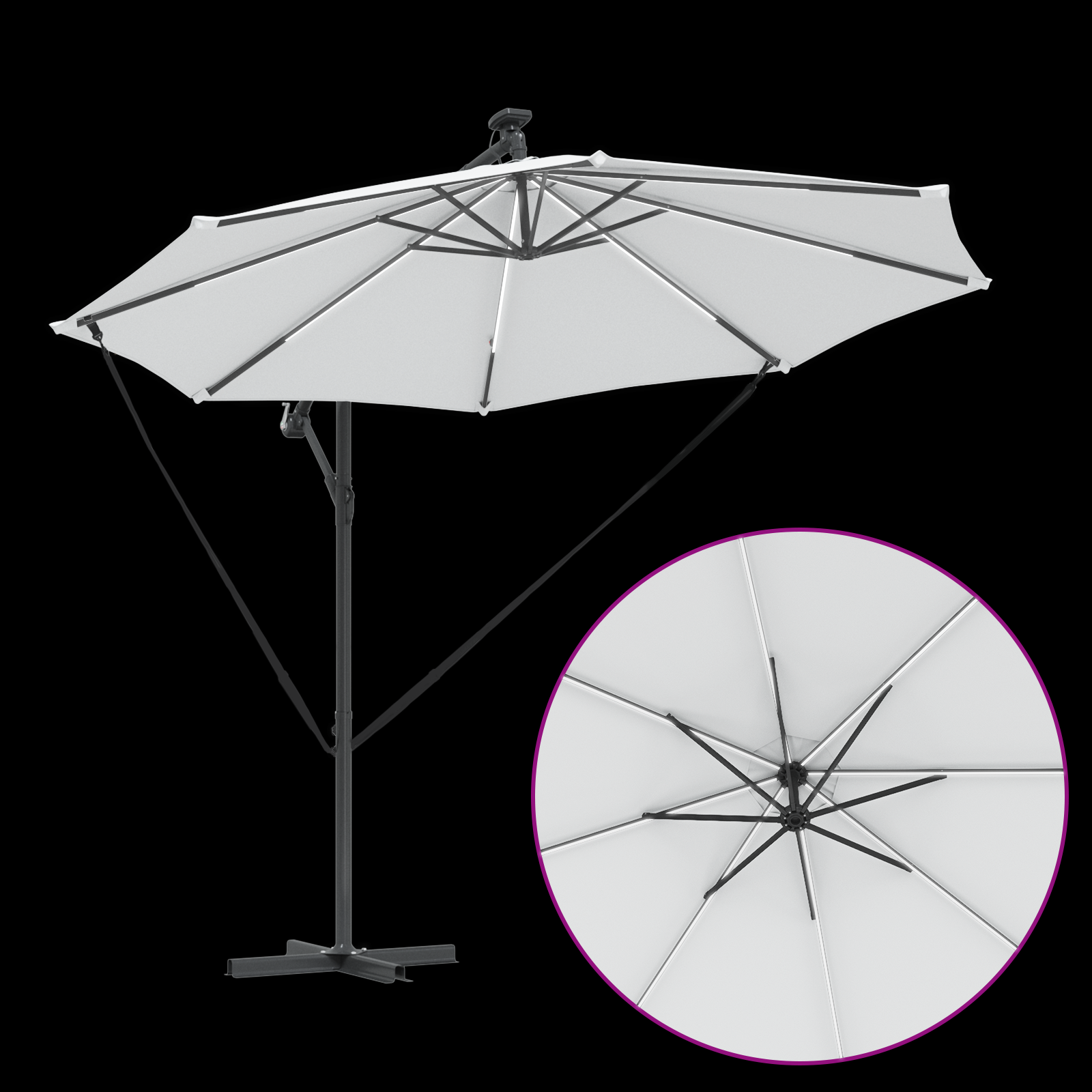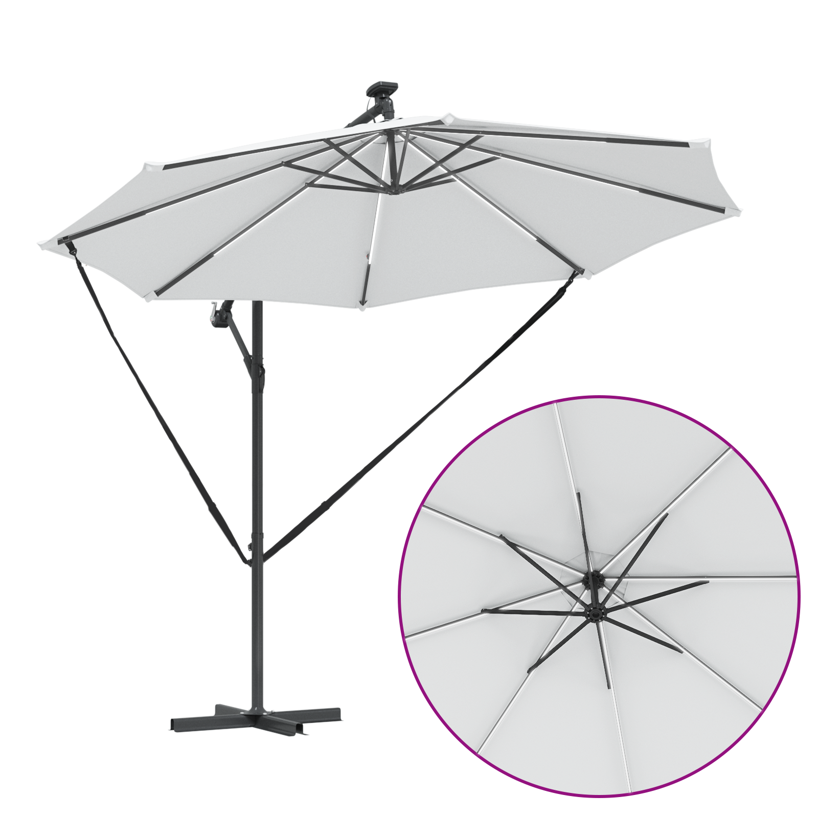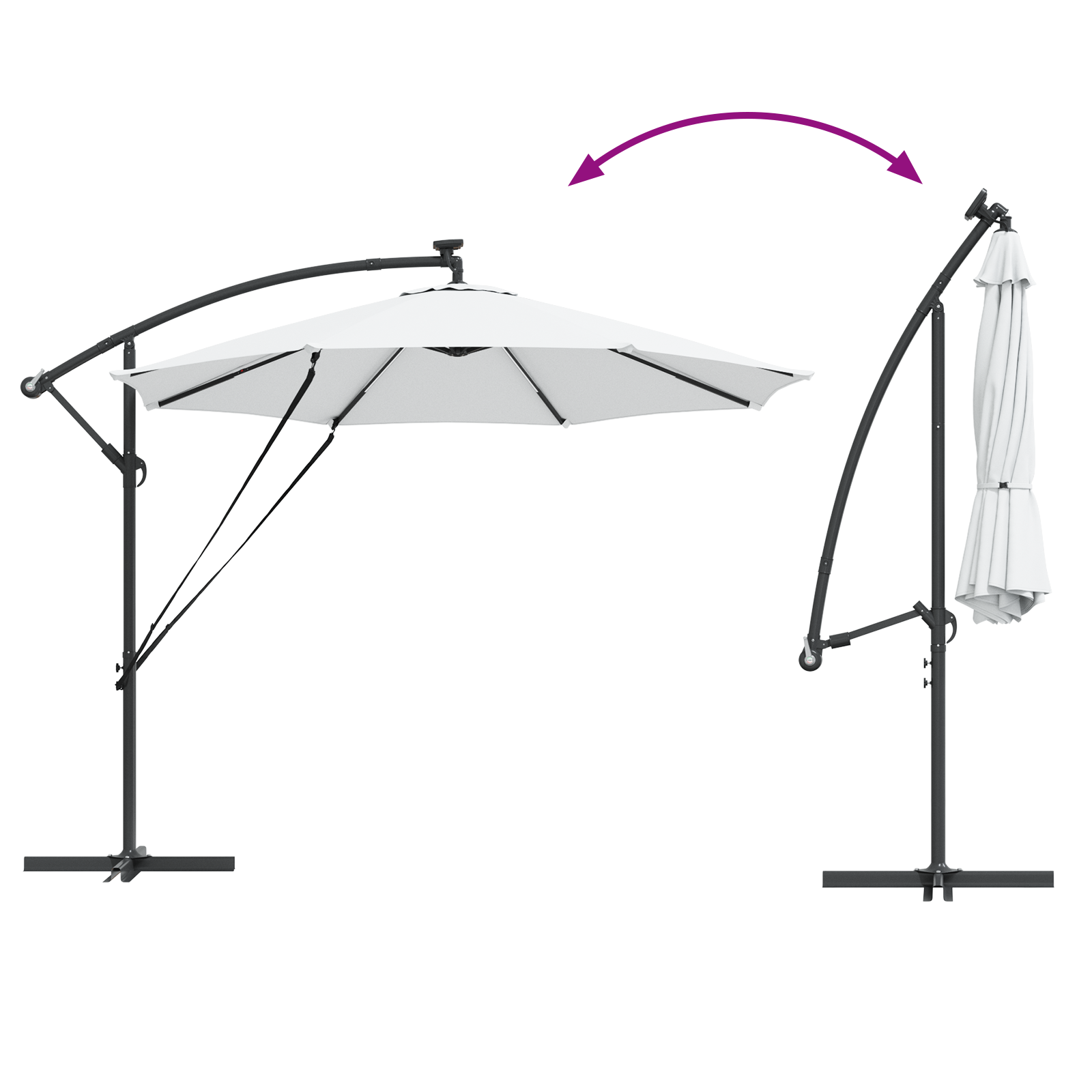 • LED osvětlení: Díky úsporným solárním LED světýlkům má slunečník příjemné osvětlení na večerní posedění.