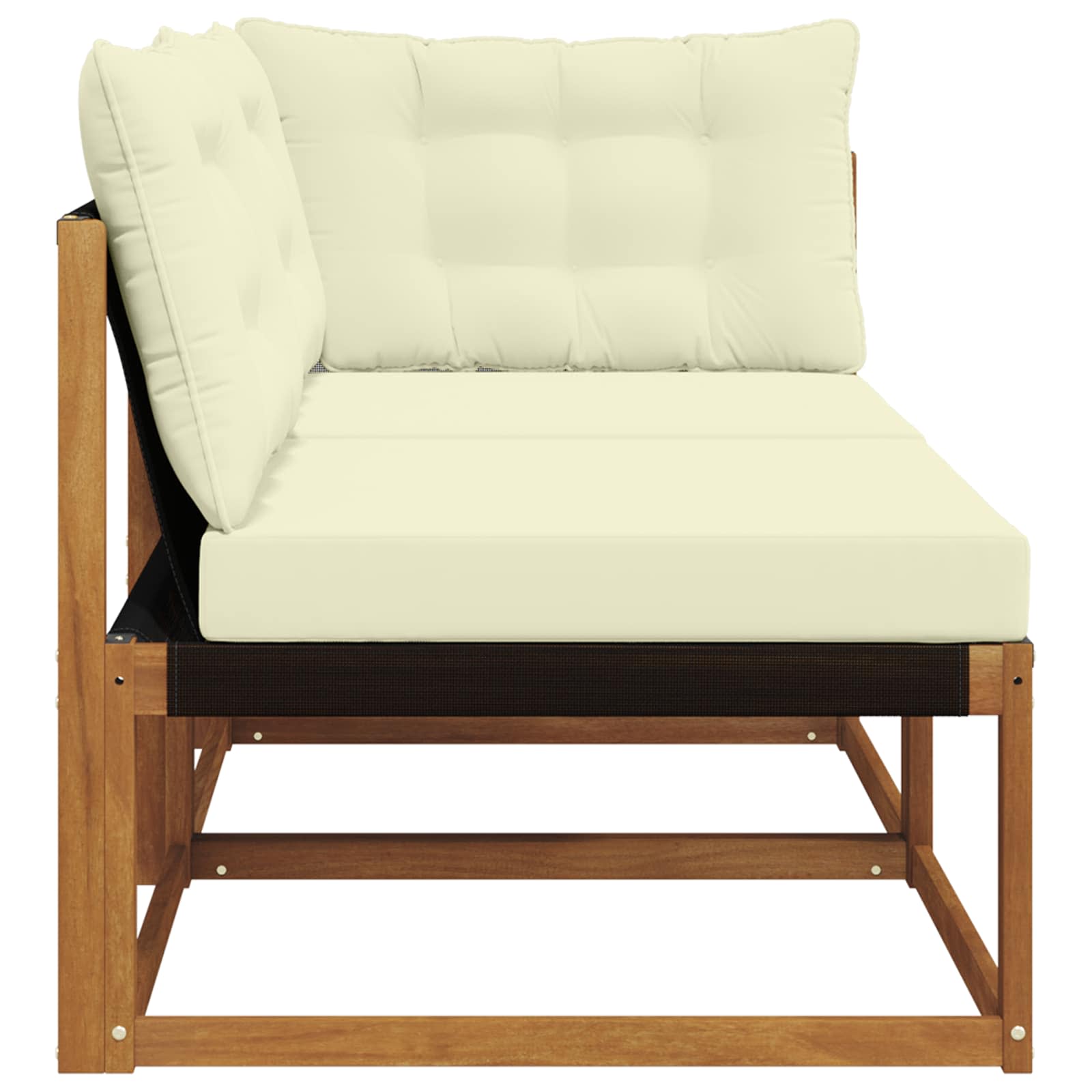 • Rám z masivního akáciového dřeva Tento rám, vyrobený z pevného akáciového dřeva, je známý svojí odolností vůči povětrnostním podmínkám, takže pohovka je stabilní a dlouho vydrží. Přirozený odstín dřeva se skvěle hodí k venkovnímu dekoru, což z něj dělá jak praktickou, tak stylovou volbu pro váš balkon nebo terasu.