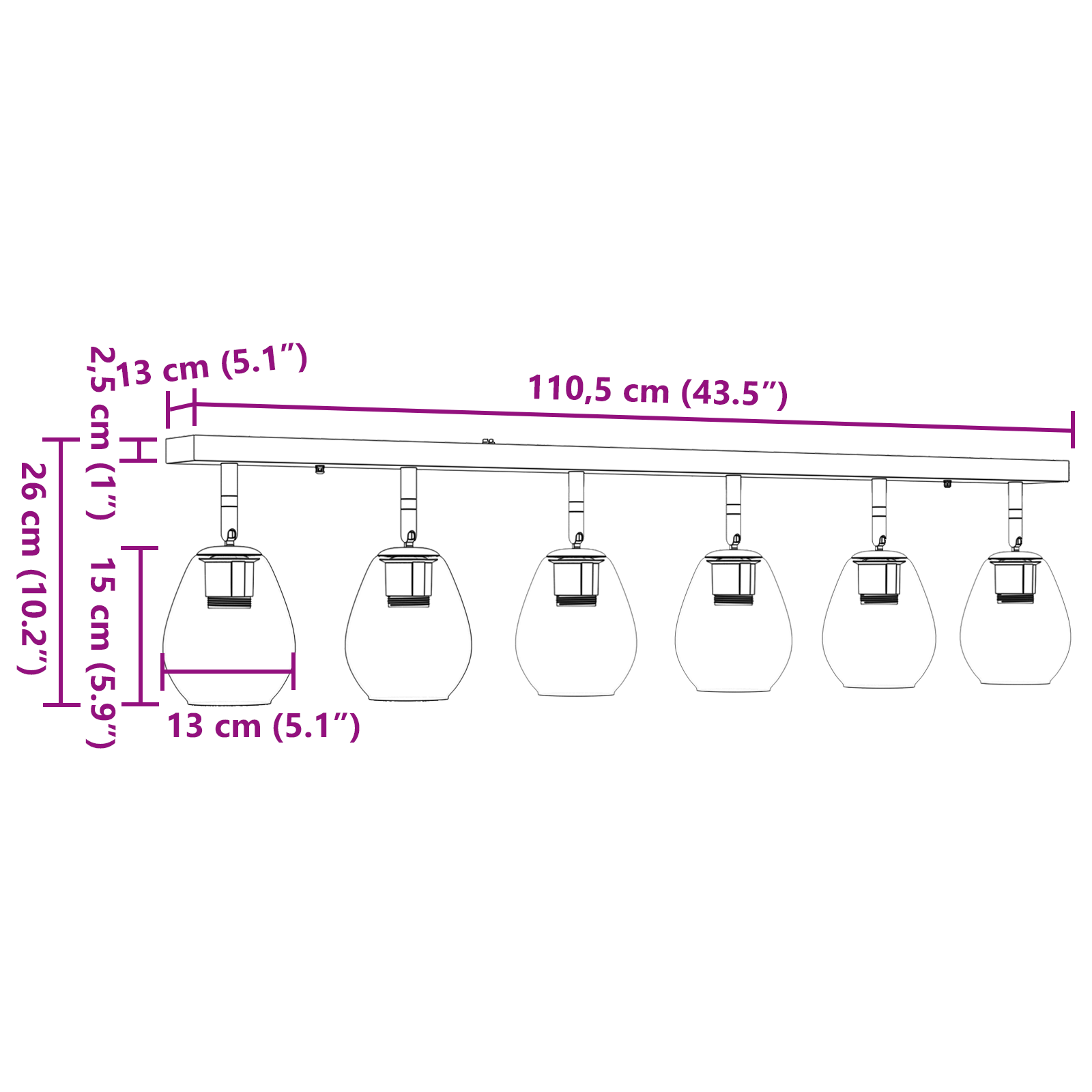 Stropní bodové světlo Černá 110.5 x 13 x 26 cm Sklo a kov