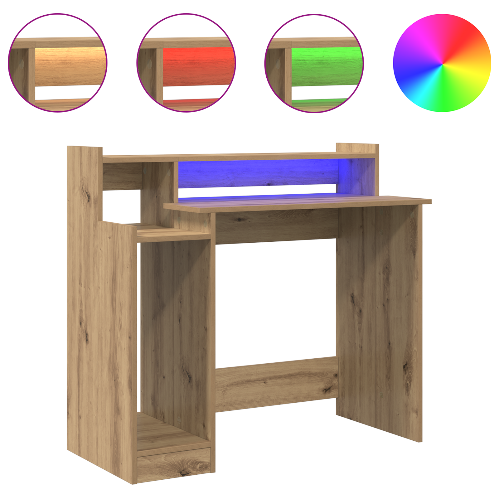 LED stůl dává každé pracovně moderní nádech s jeho štíhlým obdélníkovým designem. Ideální pro ty, kdo hledají jak styl, tak užitečnost – nabídne vám hezké pracovní místo s integrovanými LED světly a pevnou konstrukcí z kompozitního dřeva, ideální pro psaní nebo práci na laptopu.