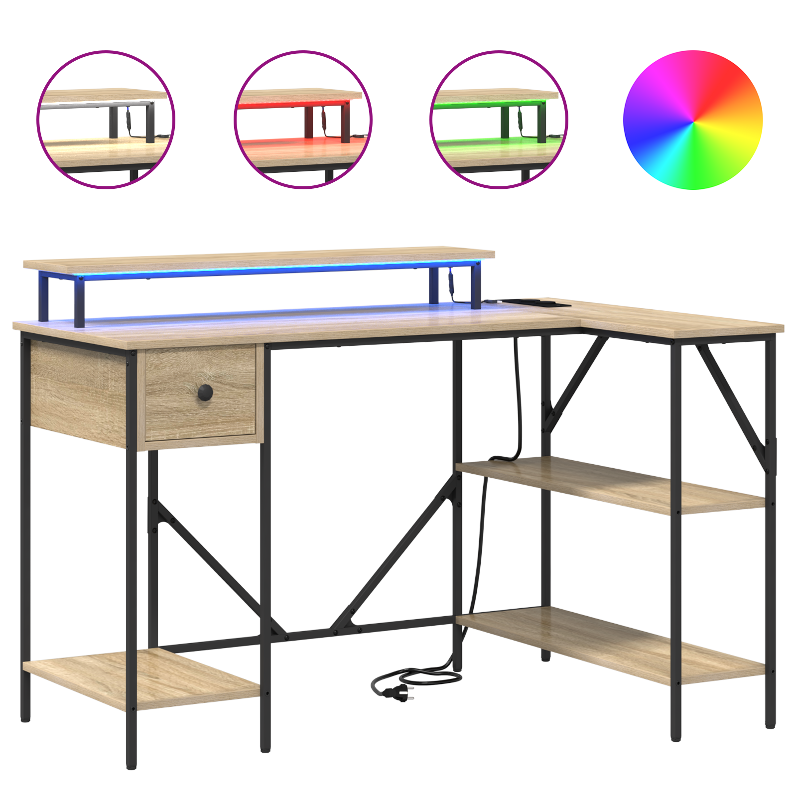 • Integrované funkce S nabíjecí stanicí zajišťuje, že tvoje zařízení jsou vždy nabitá. LED pásky ti dají možnost vybrat si barvu světla podle nálady, ovládání je pomocí tlačítek.