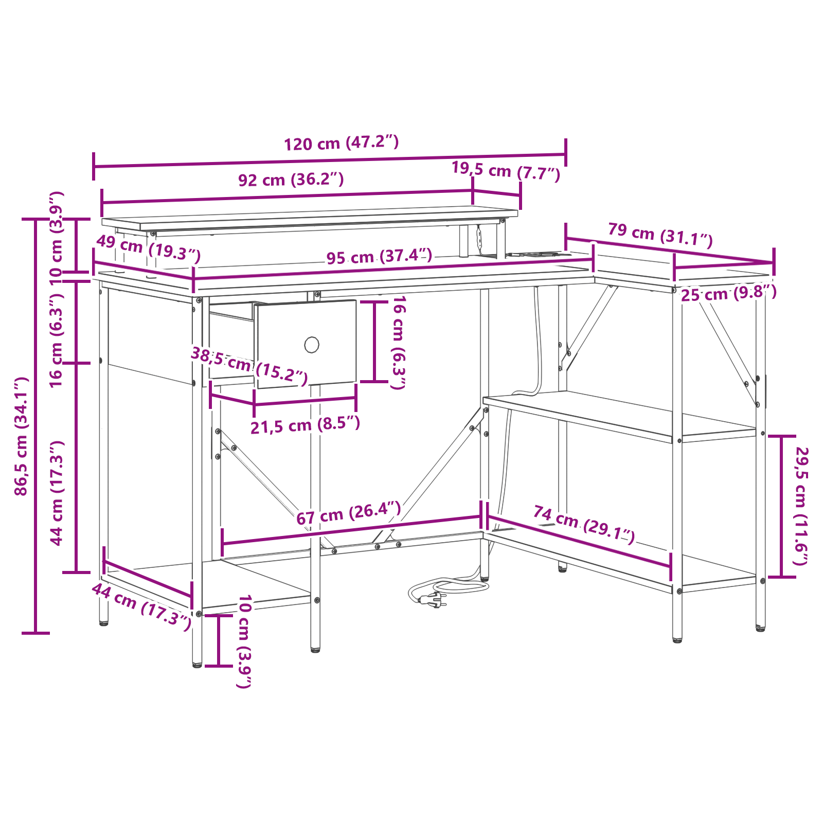 • Celkové rozměry: 120 x 79 x 86,5 cm (D x Š x V)