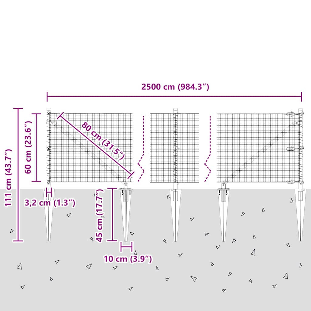 Plotový sloupek. Šedá 25 x 0,6 m (19 x 19 mm síť) Ocel a PVC