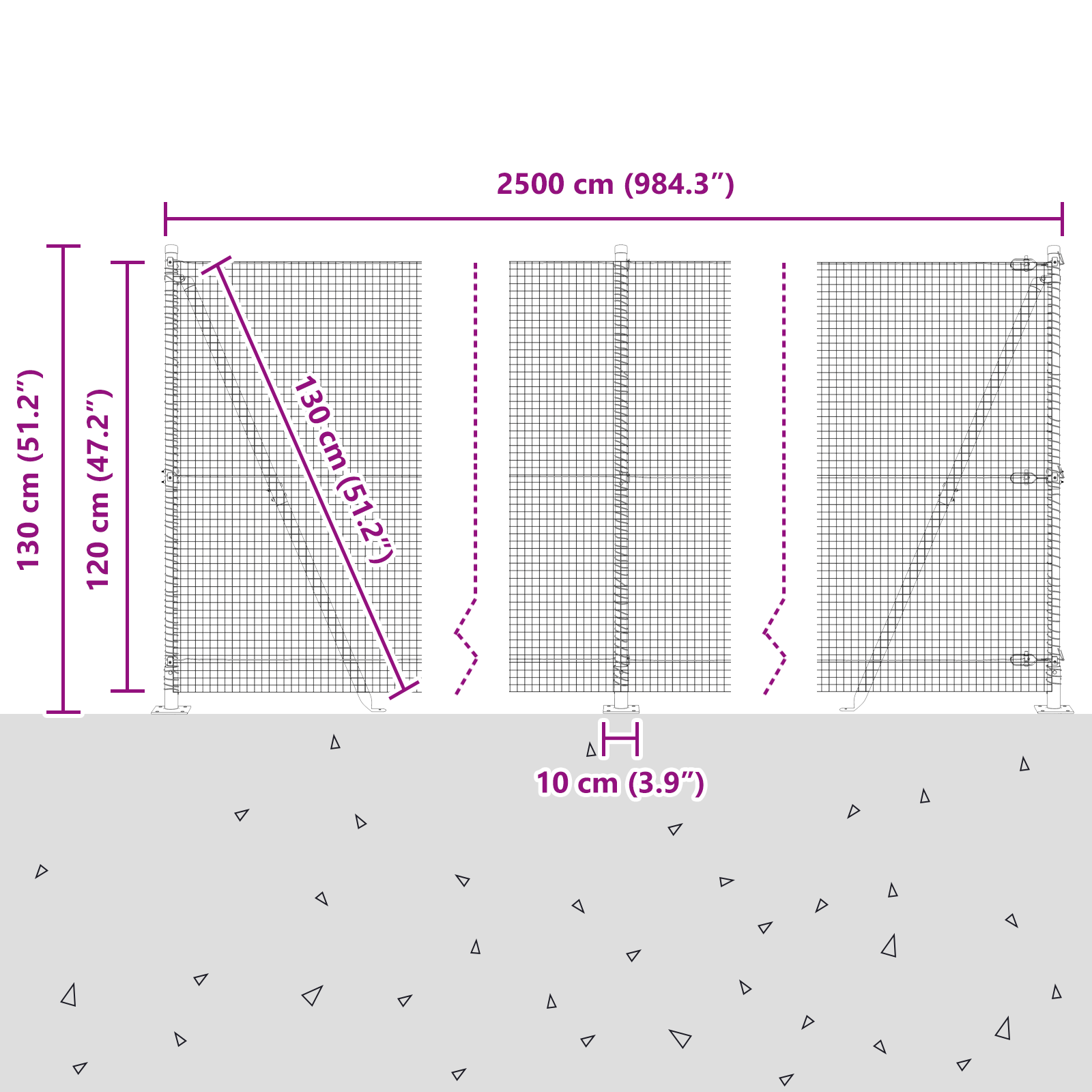Plotový sloupek. Šedá 25 x 1,2 m (19 x 19 mm síť) Ocel a PVC