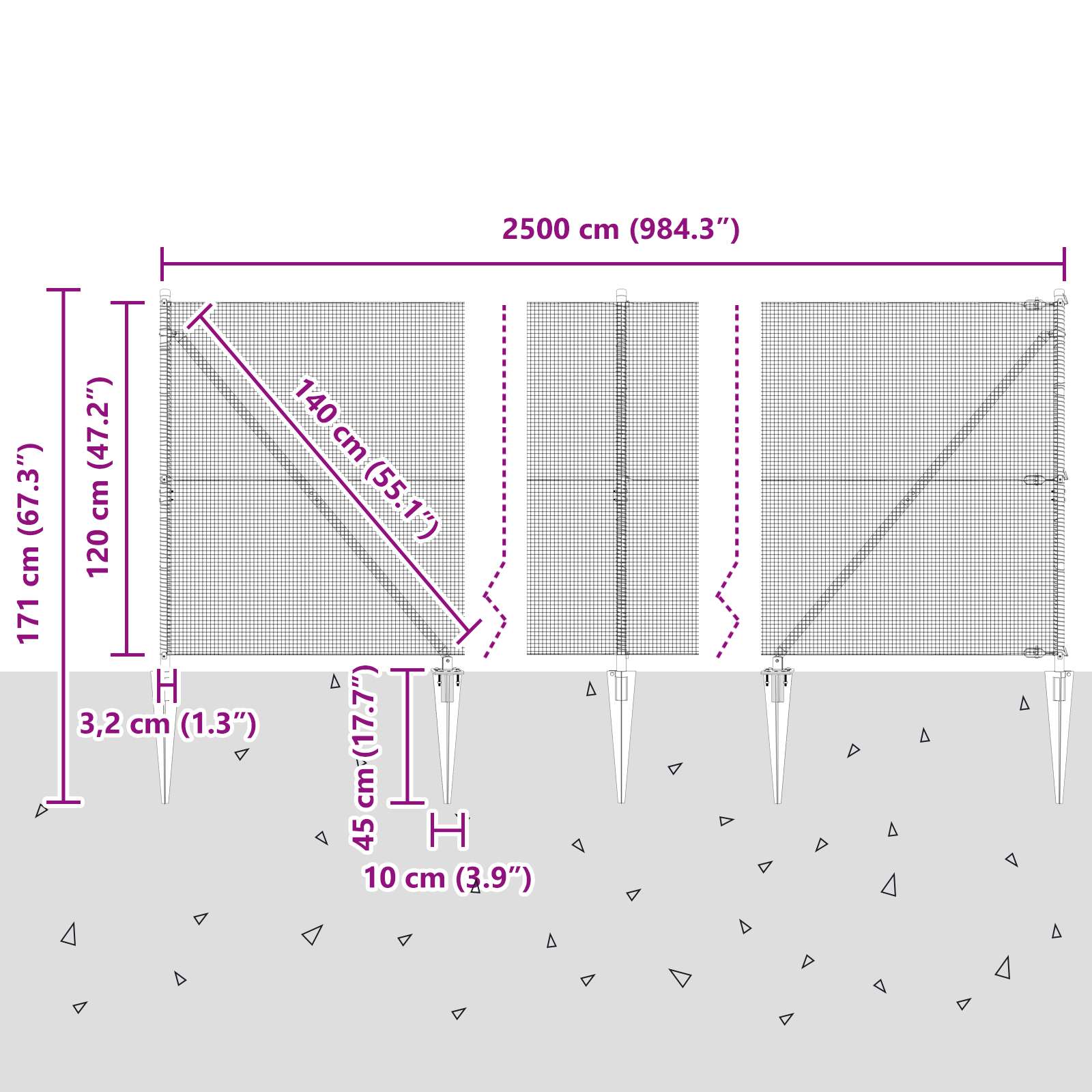 Plotový sloupek. Zelená 25 x 1,2 m (12 x 12 mm síť) Ocel a PVC