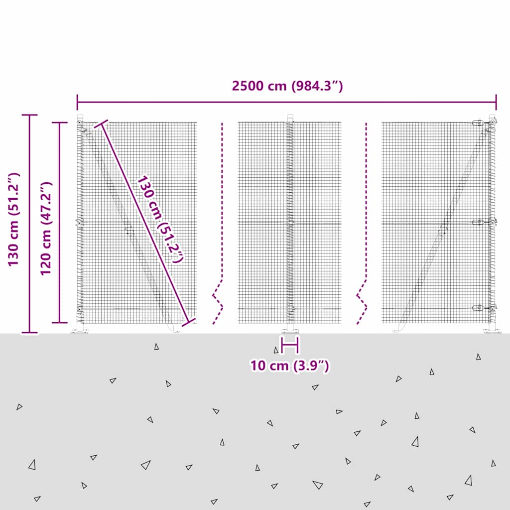 Plotový sloupek. Šedá 25 x 1,2 m (16 x 16 mm síť) Ocel a PVC
