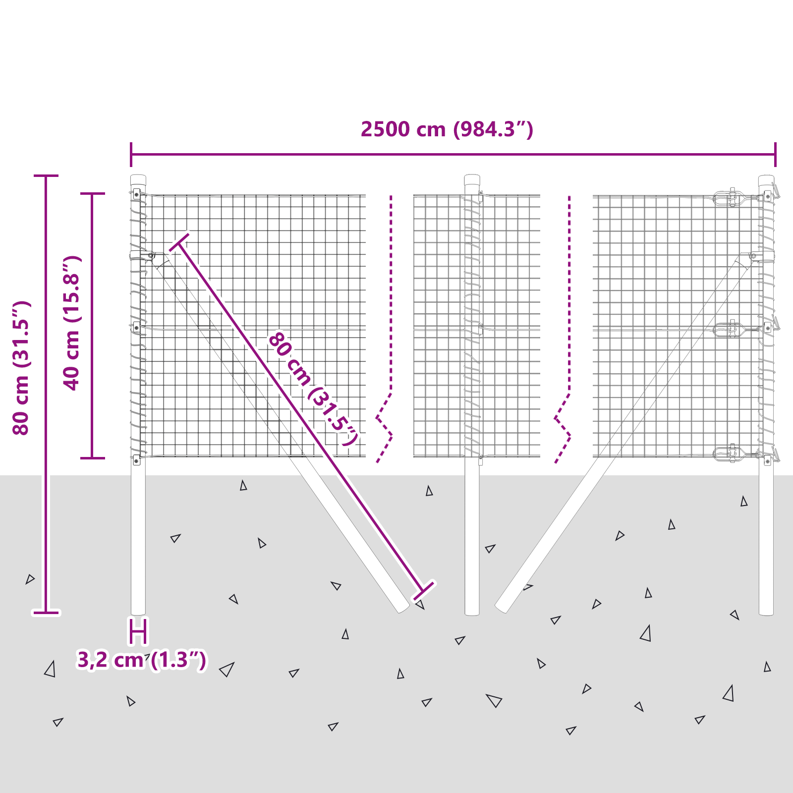 Plotový sloupek. Stříbrná 25 x 0,4 m (25 x 25 mm síť) Ocel