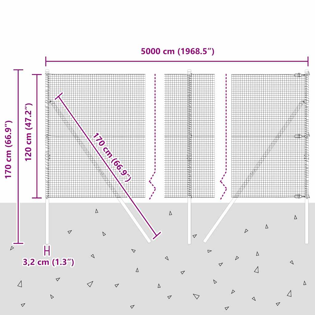 Plotový sloupek. Zelená 50 x 1,2 m (19 x 19 mm síť) Ocel a PVC