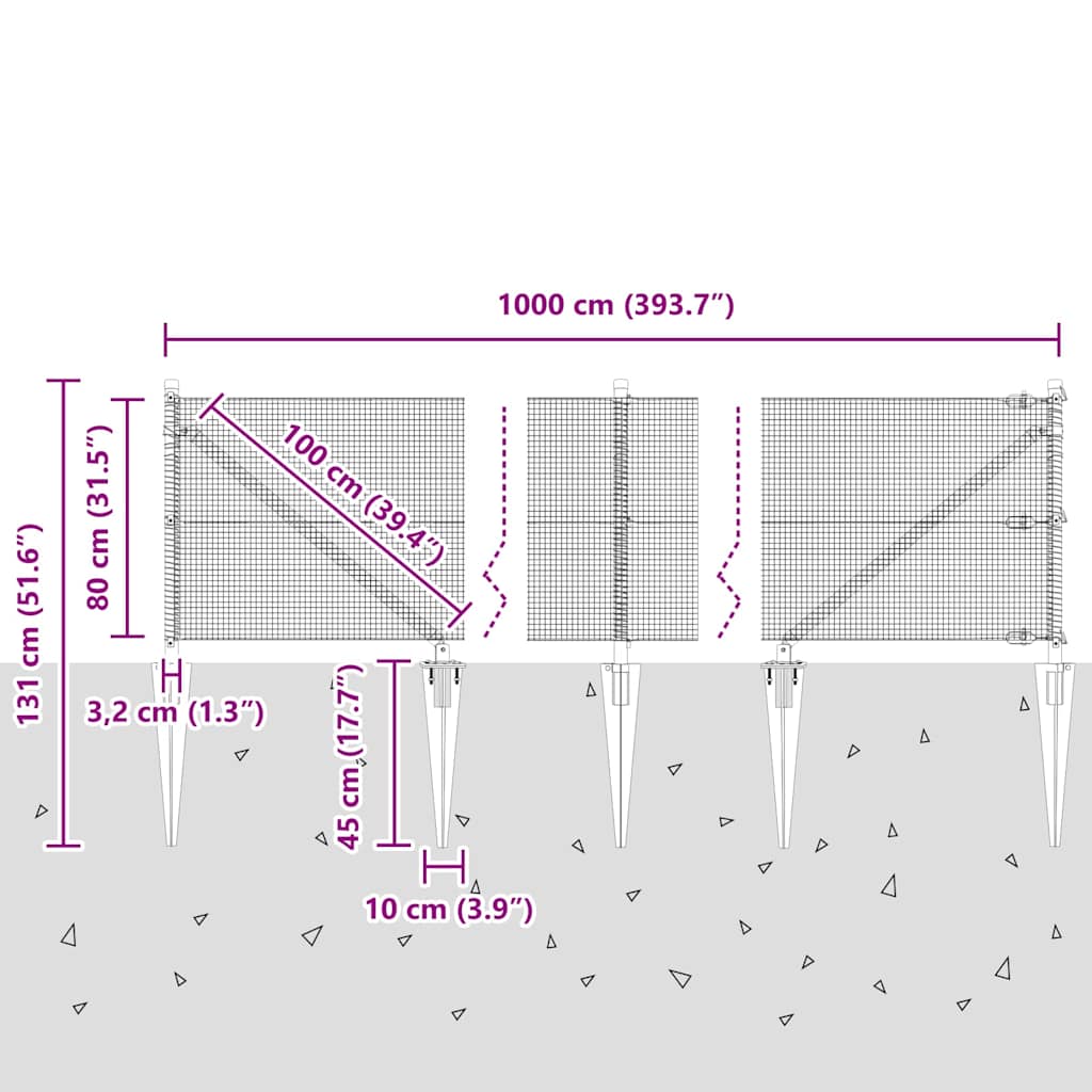 Plotový sloupek. Stříbrná 10 x 0,8 m (12 x 12 mm síť) Ocel
