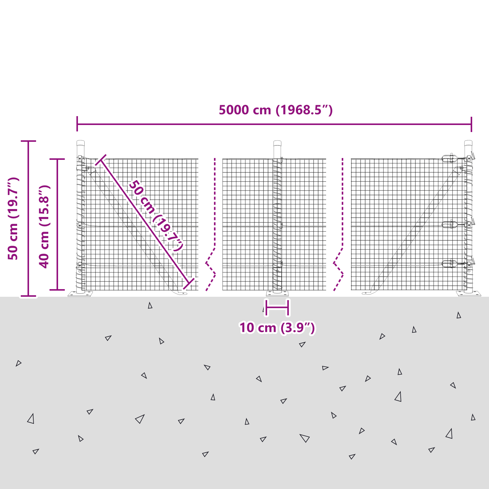 Plotový sloupek. Stříbrná 50 x 0,4 m (19 x 19 mm síť) Ocel