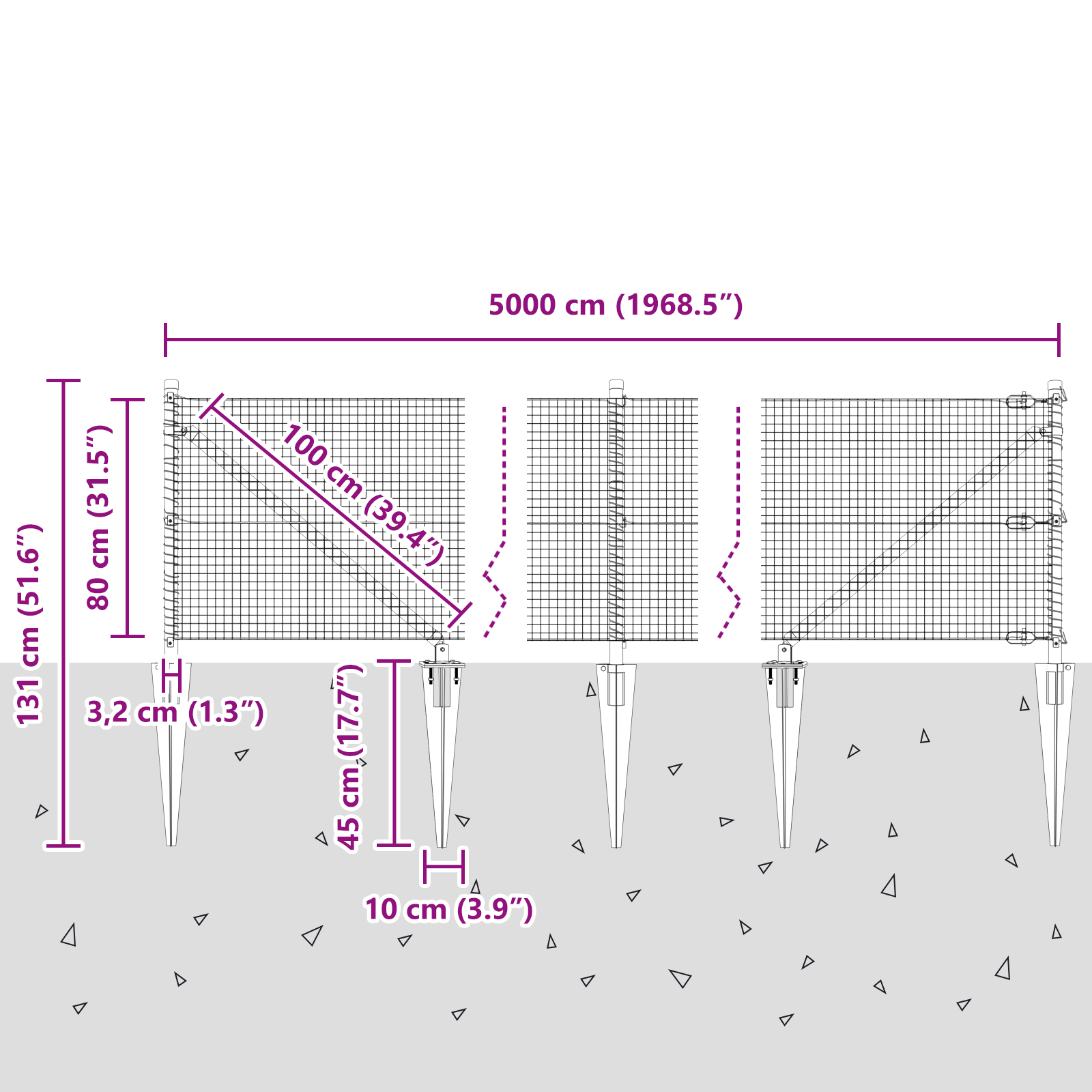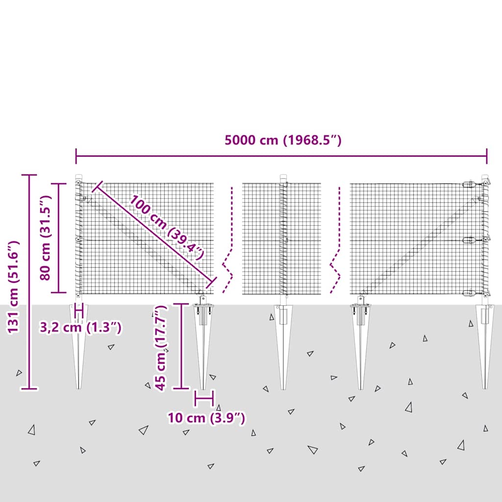 Plotový sloupek. Zelená 50 x 0,8 m (19 x 19 mm síť) Ocel a PVC