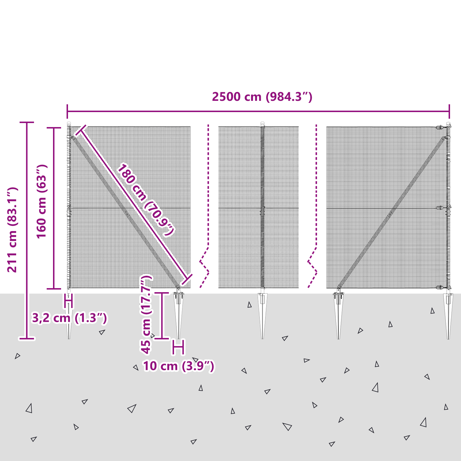 • Celkové rozměry: 2500 x 3,2 x 160 cm (D x Š x V)