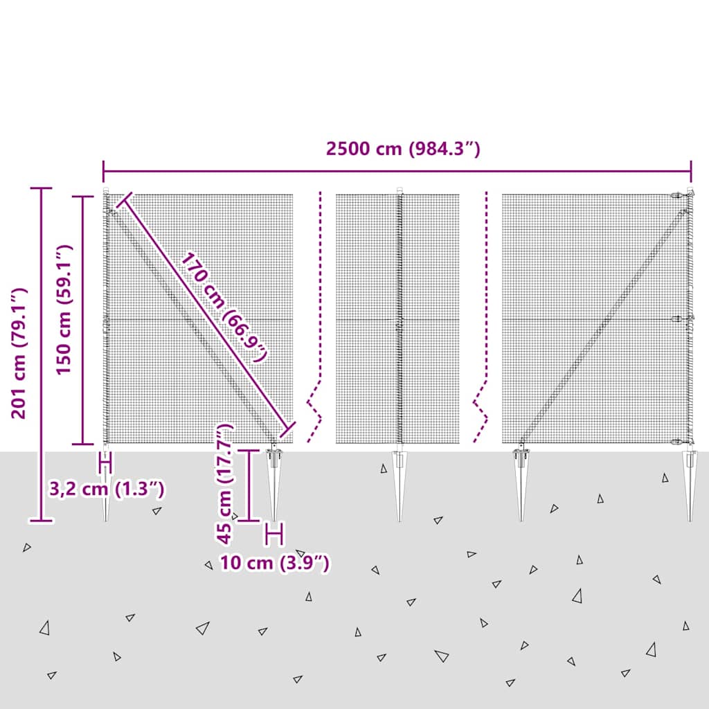 • Celkové rozměry: 2500 x 3,2 x 150 cm (D x Š x V)