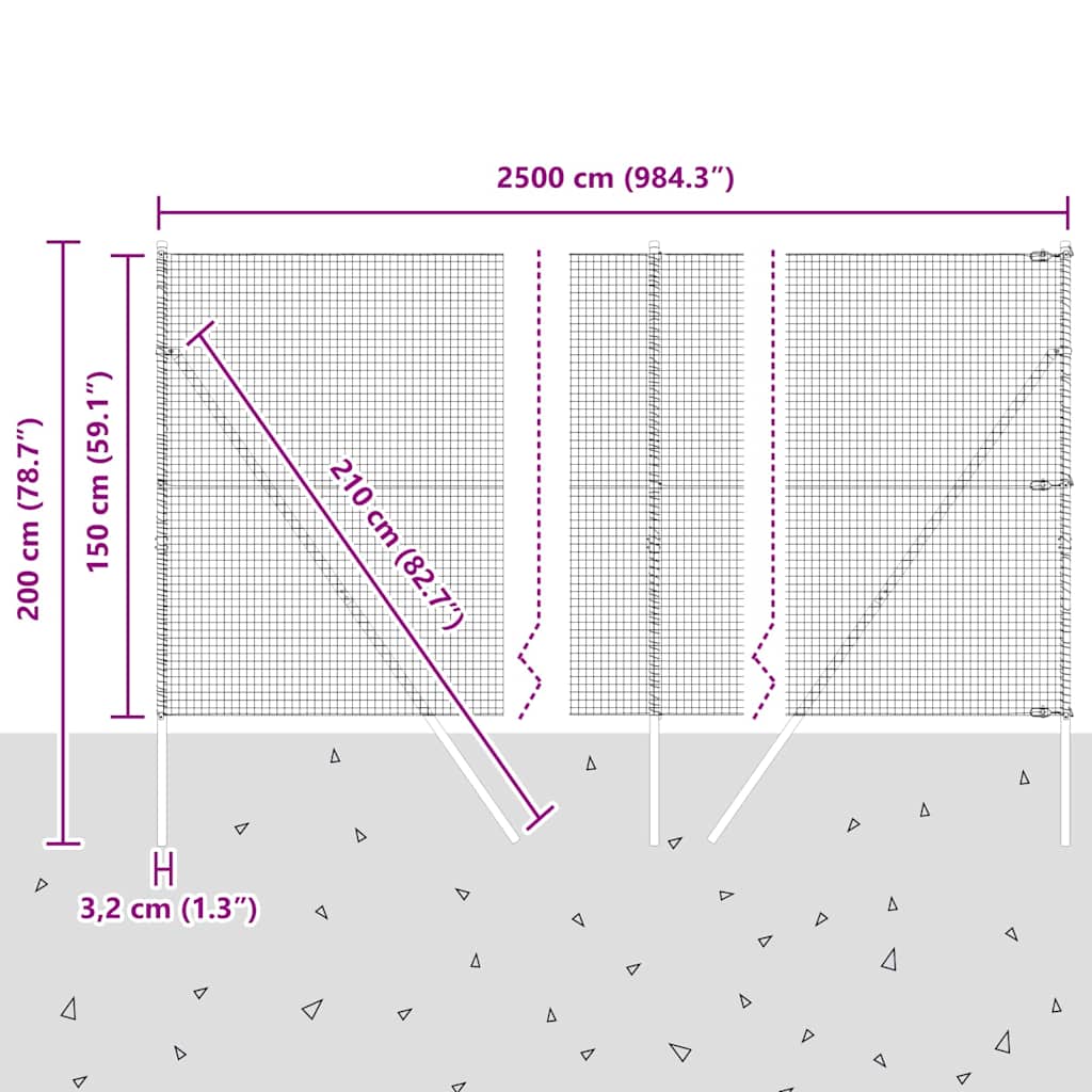 • Celkové rozměry: 2500 x 3,2 x 150 cm (D x Š x V)