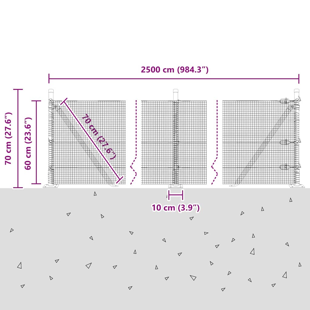 Plotový sloupek. Šedá 25 x 0,6 m (12 x 12 mm síť) Ocel a PVC