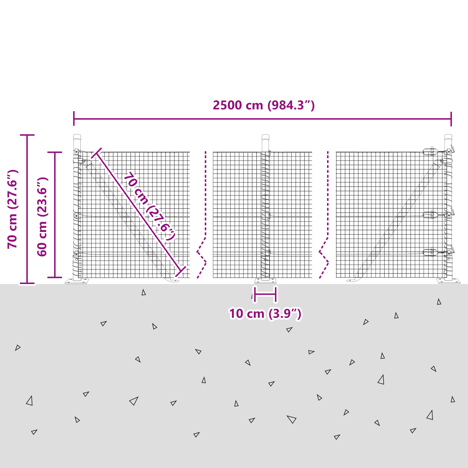 Plotový sloupek. Šedá 25 x 0,6 m (19 x 19 mm síť) Ocel a PVC