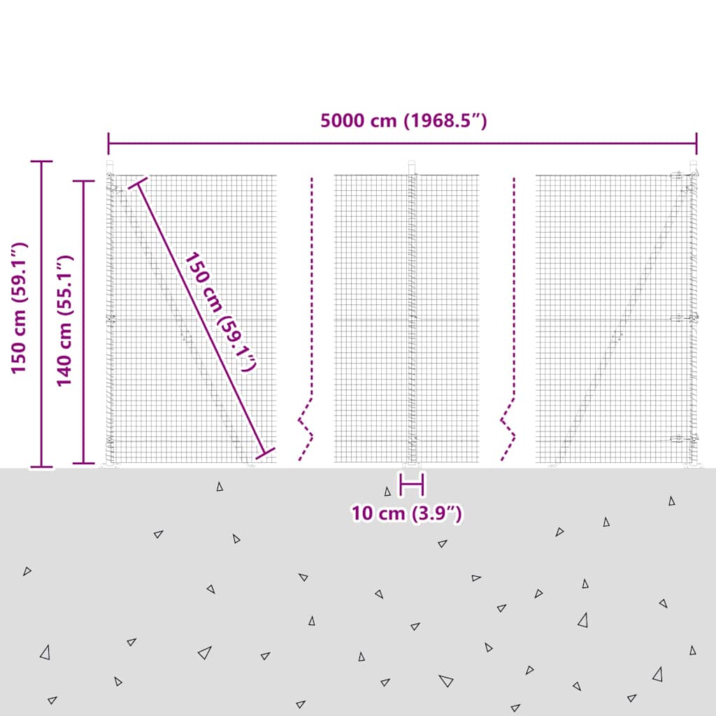 Plotový sloupek. Zelená 50 x 1,4 m (25 x 25 mm síť) Ocel a PVC
