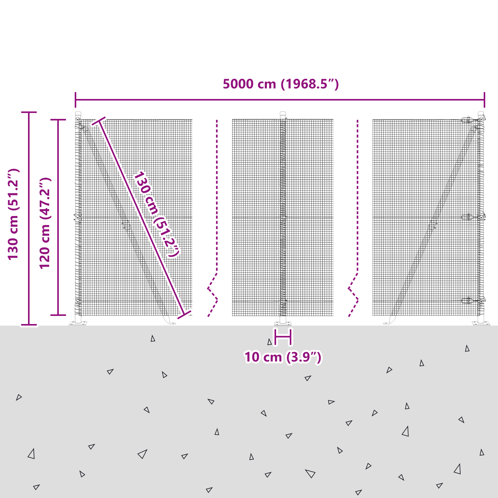• Celkové rozměry: 5000 x 3,2 x 120 cm (D x Š x V)