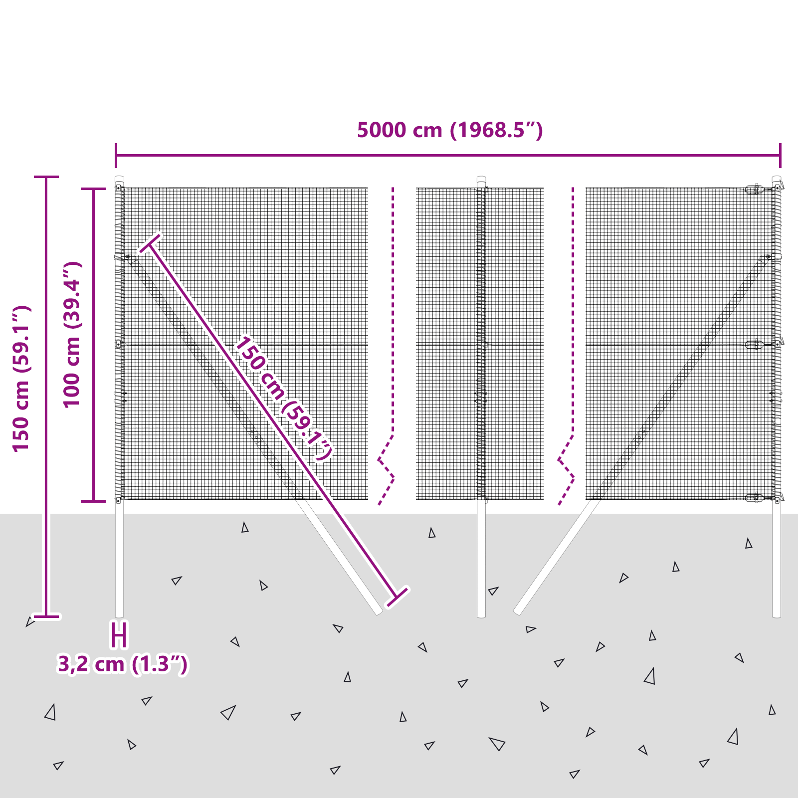 Plotový sloupek. Zelená 50 x 1 m (12 x 12 mm mřížka) Ocel a PVC