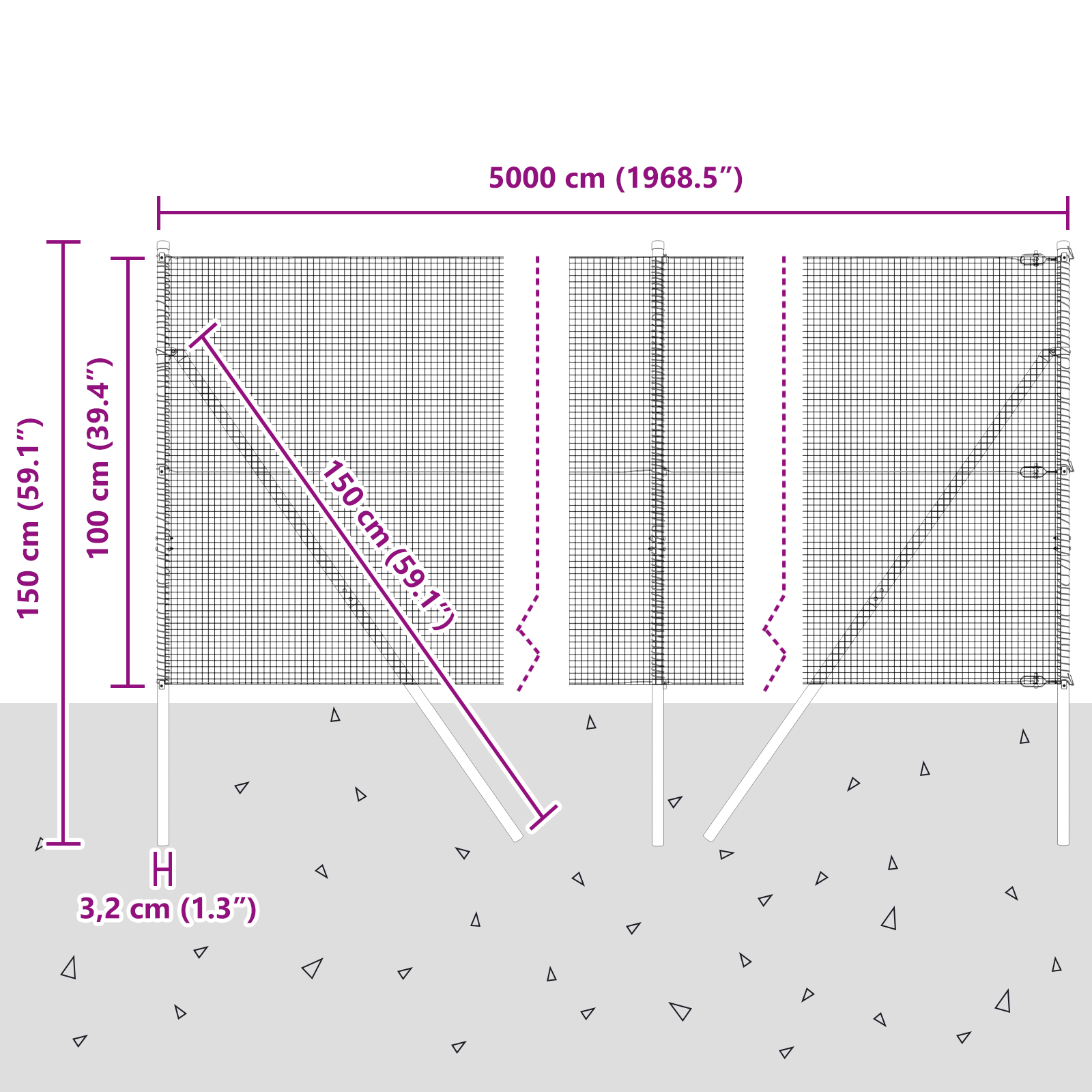 Plotový sloupek. Šedá 50 x 1 m (16 x 16 mm pletivo) Ocel a PVC