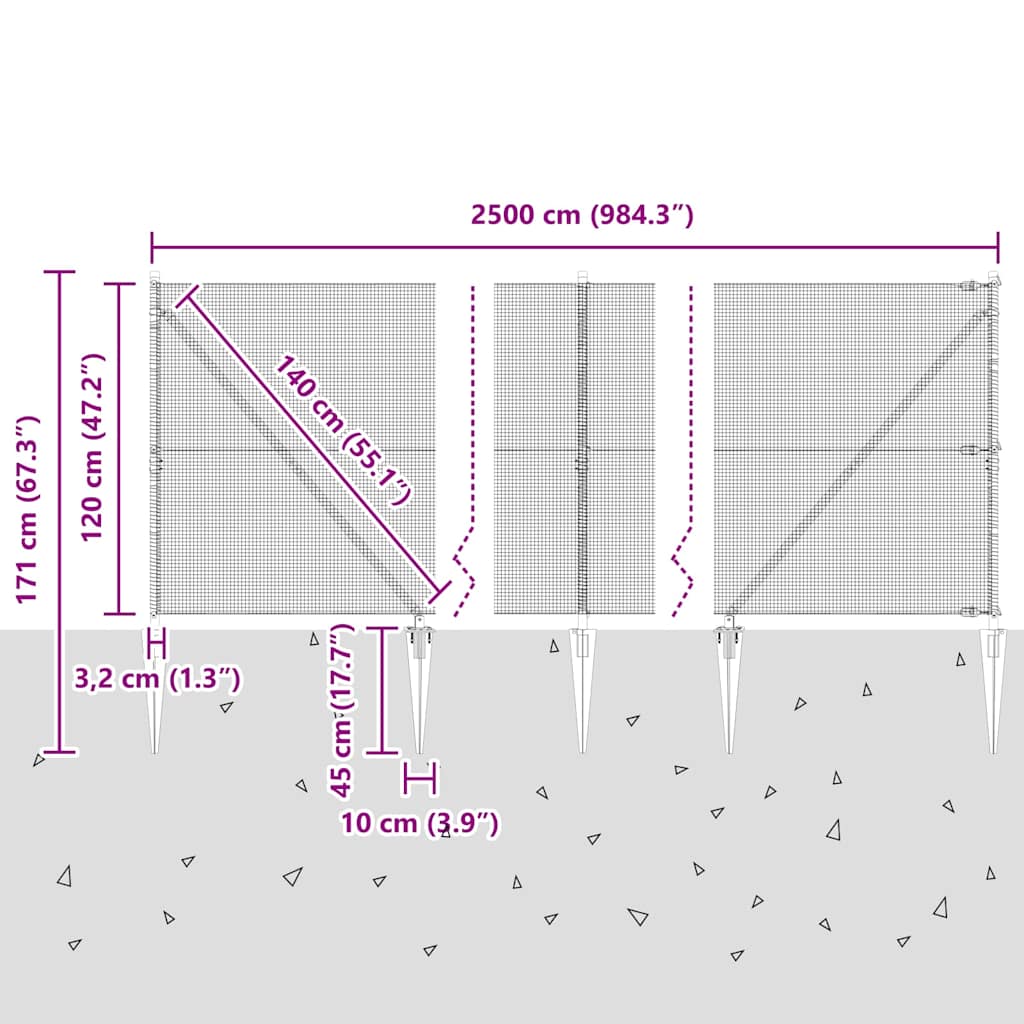 Plotový sloupek. Stříbrná 25 x 1,2 m (12 x 12 mm síť) Ocel