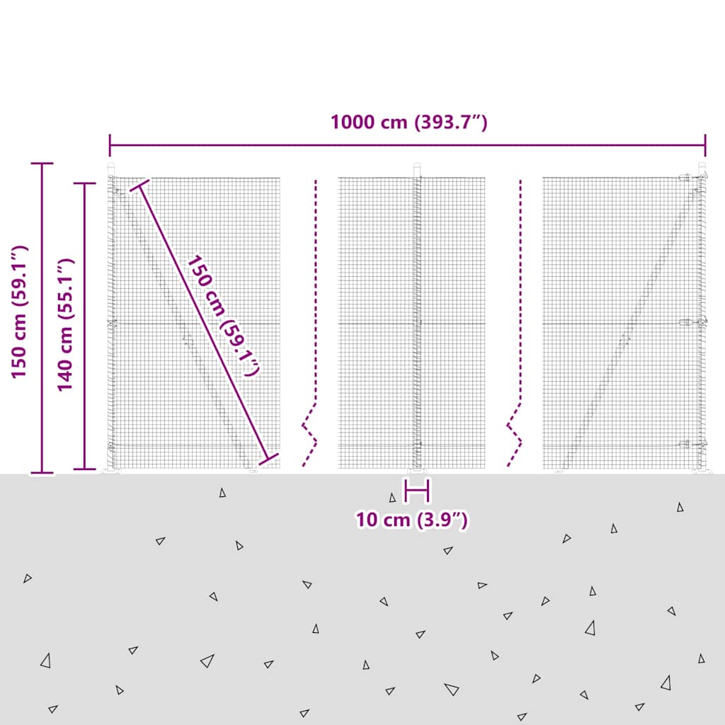 Plotový sloupek. Šedá 10 x 1,4 m (síť 19 x 19 mm) Ocel a PVC