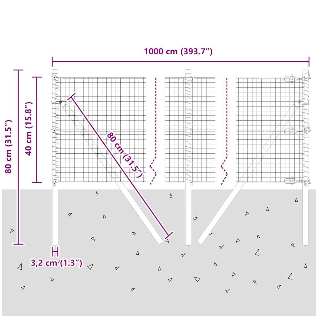 Plotový sloupek. Stříbrná 10 x 0,4 m (25 x 25 mm síť) Ocel