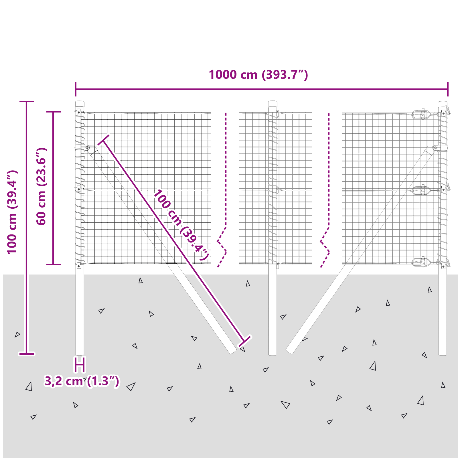 Plotový sloupek. Stříbrná 10 x 0,6 m (25 x 25 mm síť) Ocel