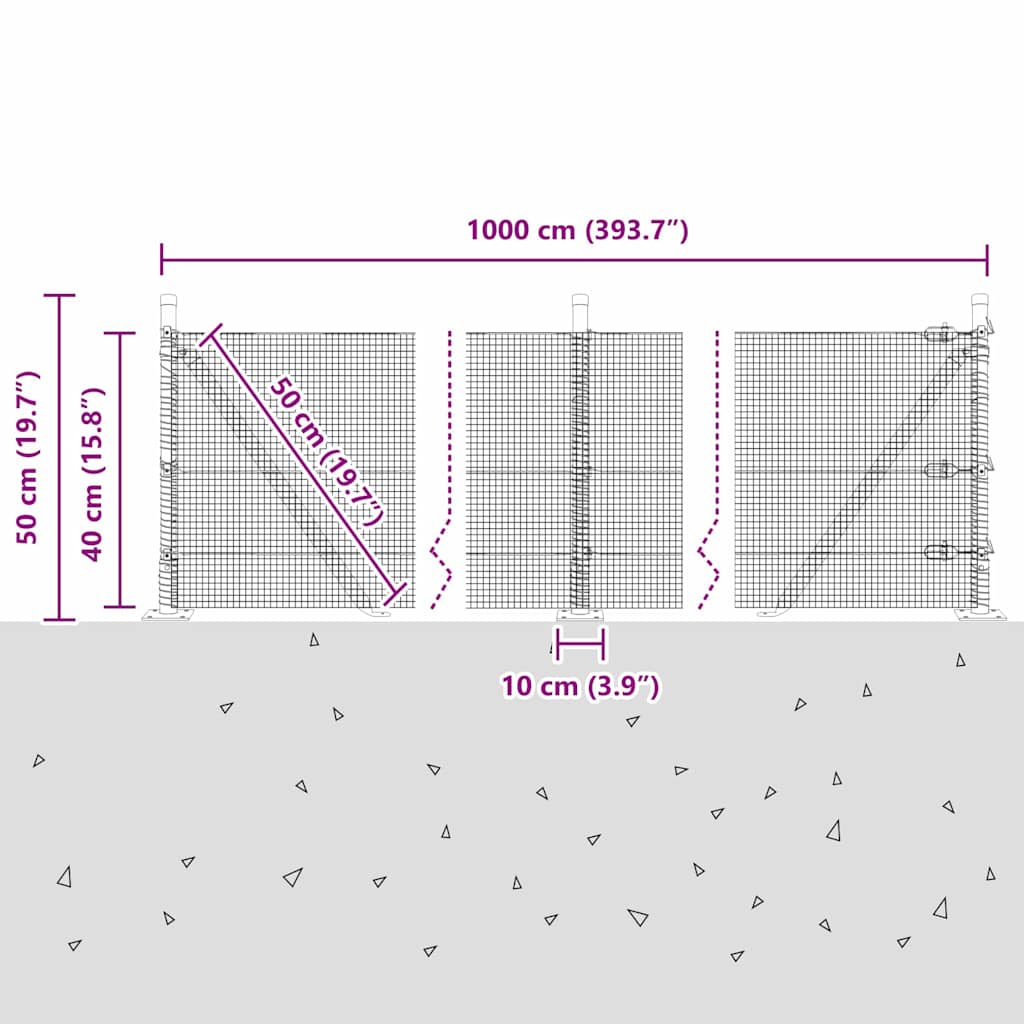 Plotový sloupek. Šedá 10 x 0,4 m (12 x 12 mm síť) Ocel a PVC